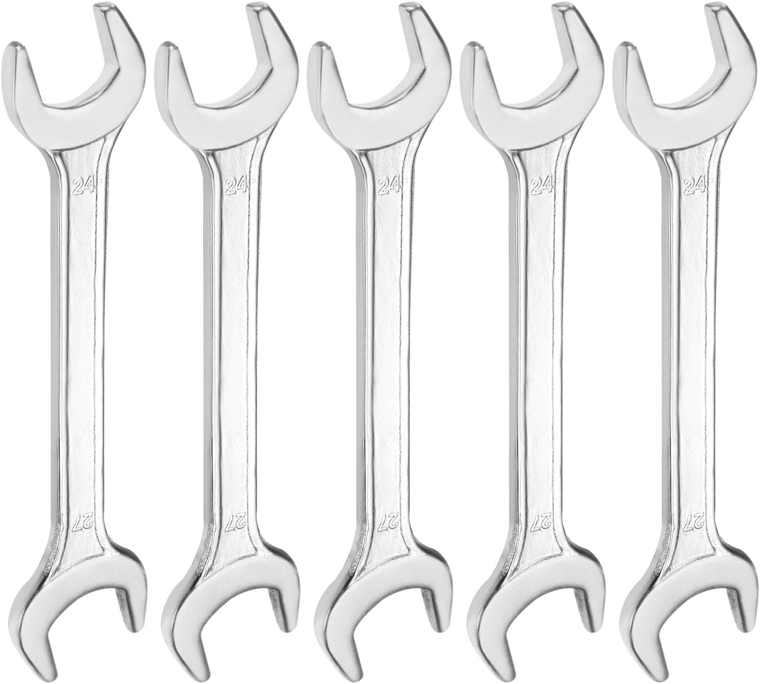 HARFINGTON 5pcs Double Open End Wrench 24mm x 27mm Metric 15 Degree Offset Angle Small Flat Head Wrench Galvanizing Open Ended Spanner for Automotive Repair Furniture Assembly