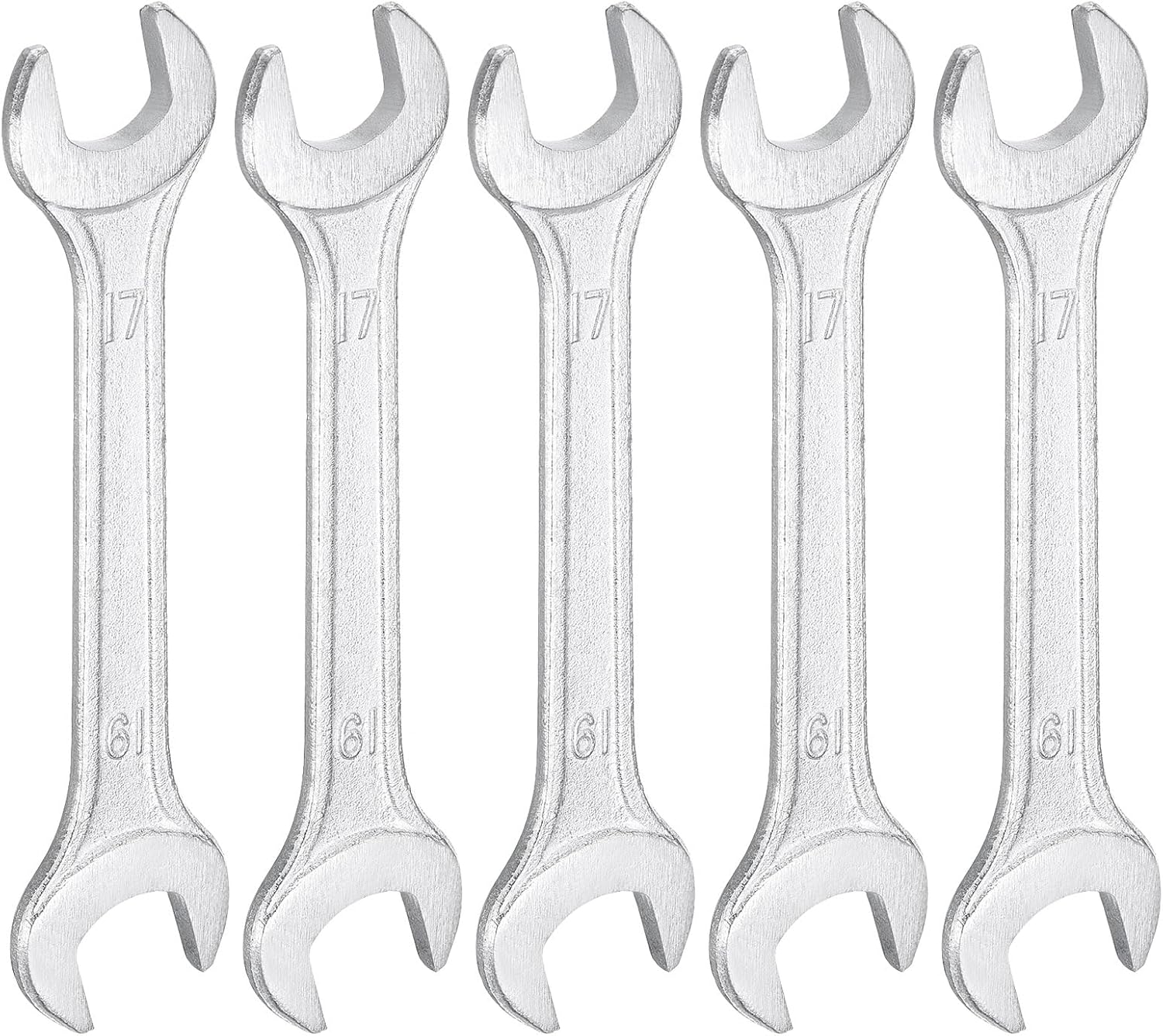 HARFINGTON 5pcs Double Open End Wrench 17mm x 19mm Metric 15 Degree Offset Angle Small Flat Head Wrench Galvanizing Open Ended Spanner for Automotive Repair Furniture Assembly