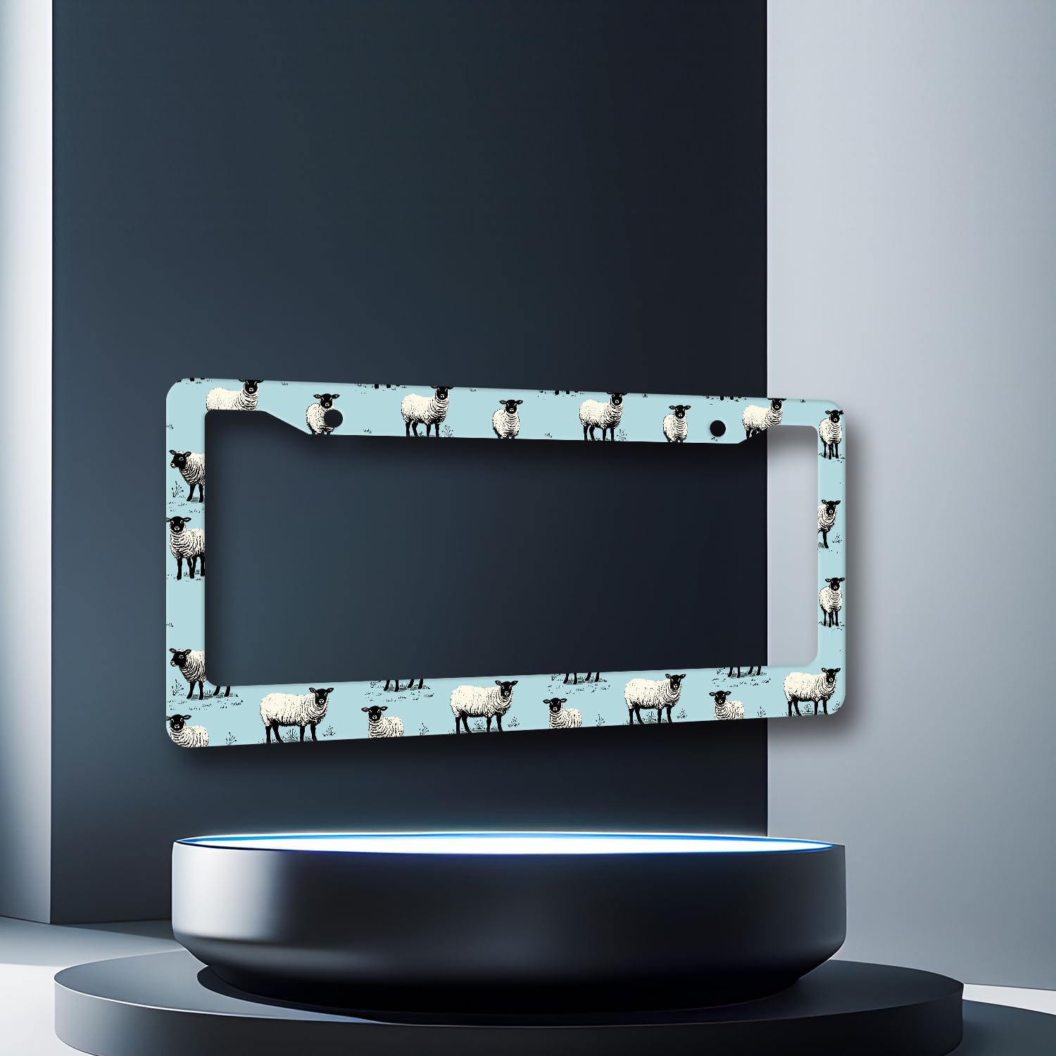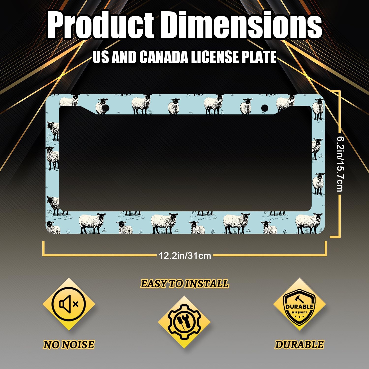 Cute Sheep License Plate Frame Animals License Plate Holder Stainless Steel Funny Design Compatible with Standard License Plate for USA Canada 12.3" x 6.3" with 2 Screws
