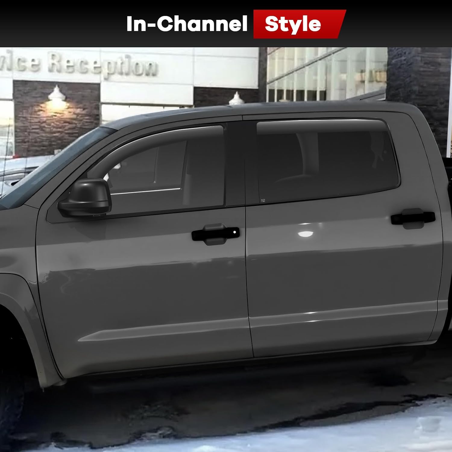 4PCS in Channel Rain Guards for Toyota Tundra Crew Max 2007 2008 2009 2010 2011 2012 2013 2014 2015 2016 2017 2018 2019 2020 2021, Vent Window Visors Shades, Durable Wind Deflectors