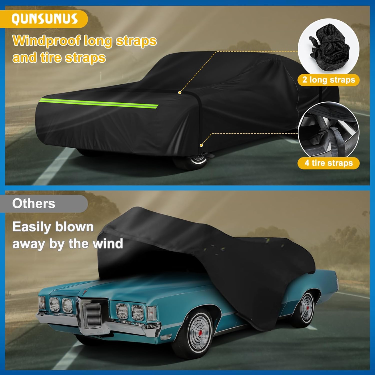 QUNSUNUS Waterproof Car Cover for Pontiac Grand Prix 1962-1977, Outdoor Car Covers with Zipper, All Weather Cover with Straps and Elastic Edges for Wind, Sun, UV and Dust Protection