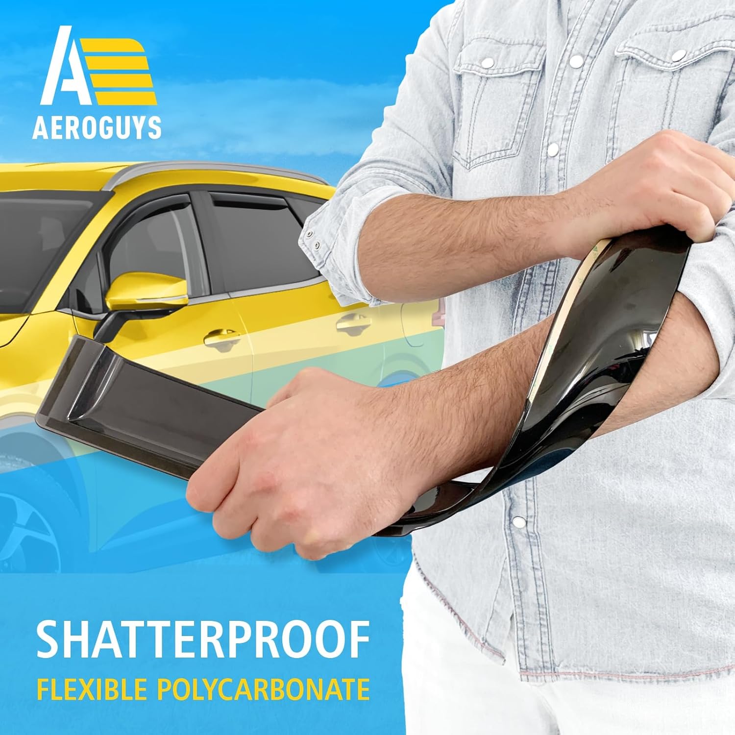 - Incredibly Durable AEROGUYS Auto Window Deflectors β They are made with strong and tough polycarbonate which is clear and scratch-resistant. They also provide UV protection making your ride more comfortable under all weather conditions.
