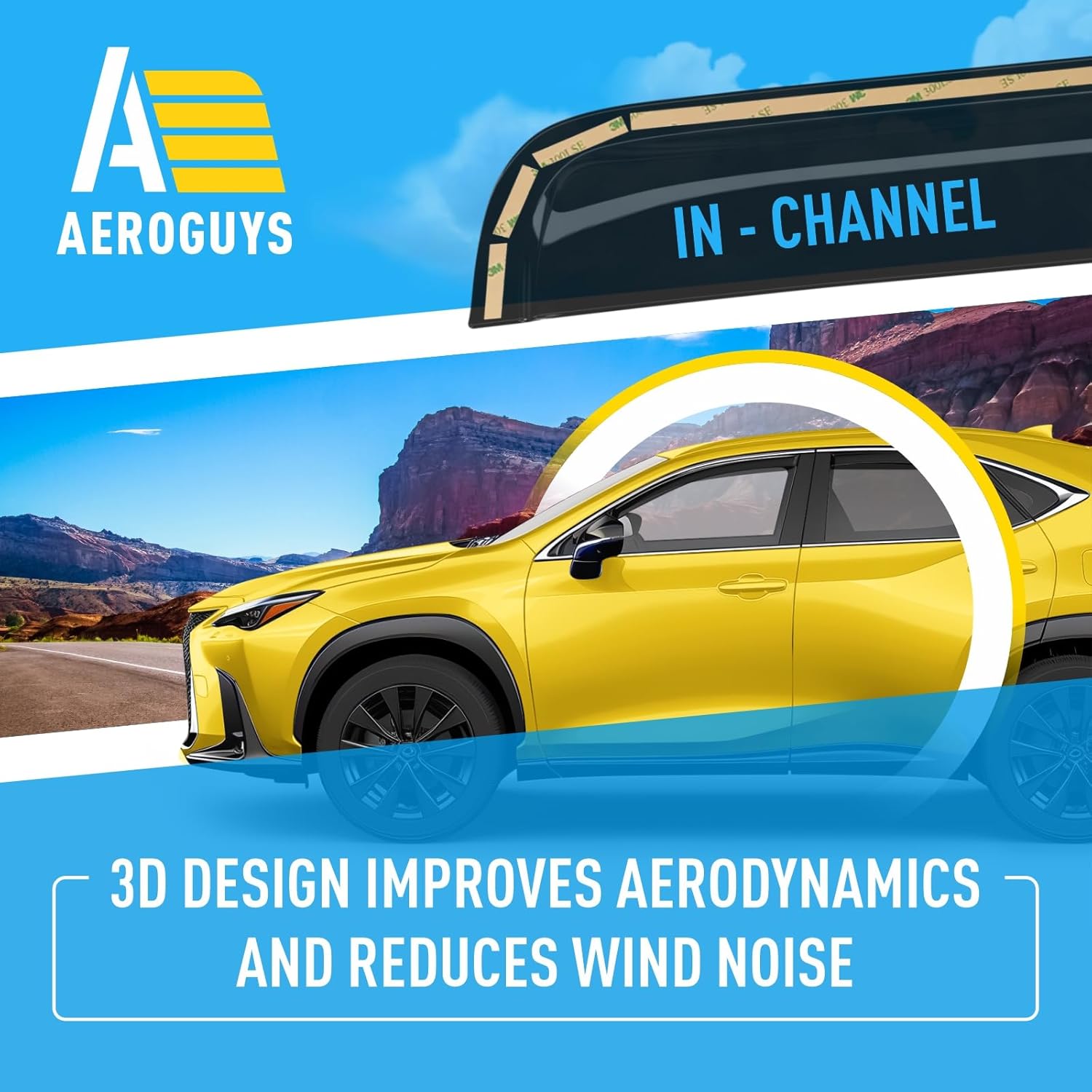 - No Tools Needed, Quick and Easy Assembly β These rain guards are very easy to fit. IN-CHANNEL INSTALLATION provides perfect fit for your car. Just slip it onto your carβs window and your job is done within minutes. There is no drilling or no tools required. Be sure that AEROGUYS window deflectors are water resistant, sun protective and will not bend, break or crack regardless of the weather conditions.