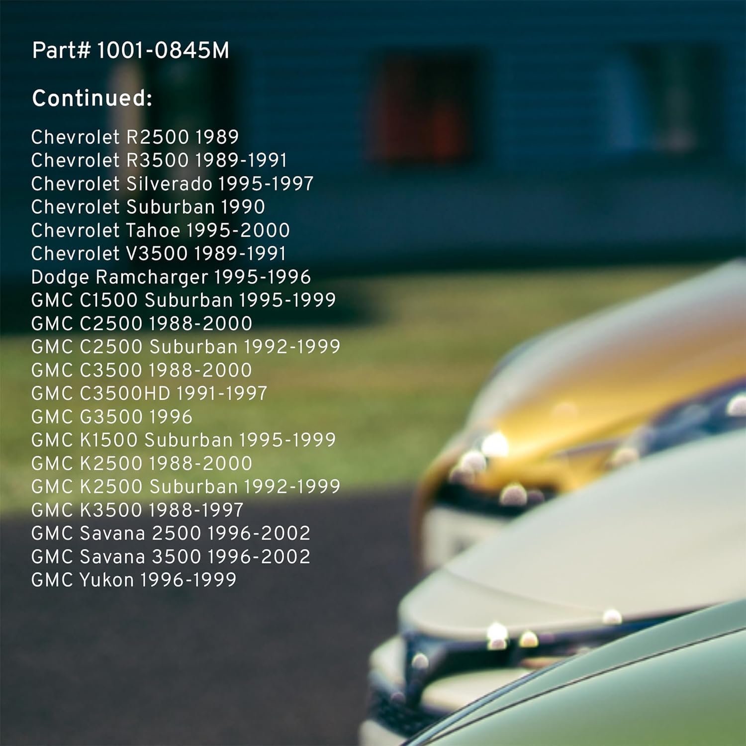 - FITMENT LIST: Select Models 1988-2002 CHEVROLET/ GMC/ DODGE (1001-0845M) Verify Fitment using AmazonConfirmedFit tool.