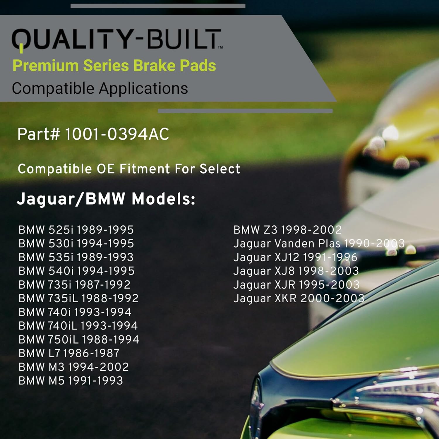 Premium Ceramic Front Brake Pads (1001-0394AC) Compatible with 1986-2003 BMW/Jaguar (525i/530i/535i/540i/735i/735iL/740i/740iL/750iL/L7/M3/M5/Vanden Plas/XJ12/XJ8/XJR/XKR/Z3)