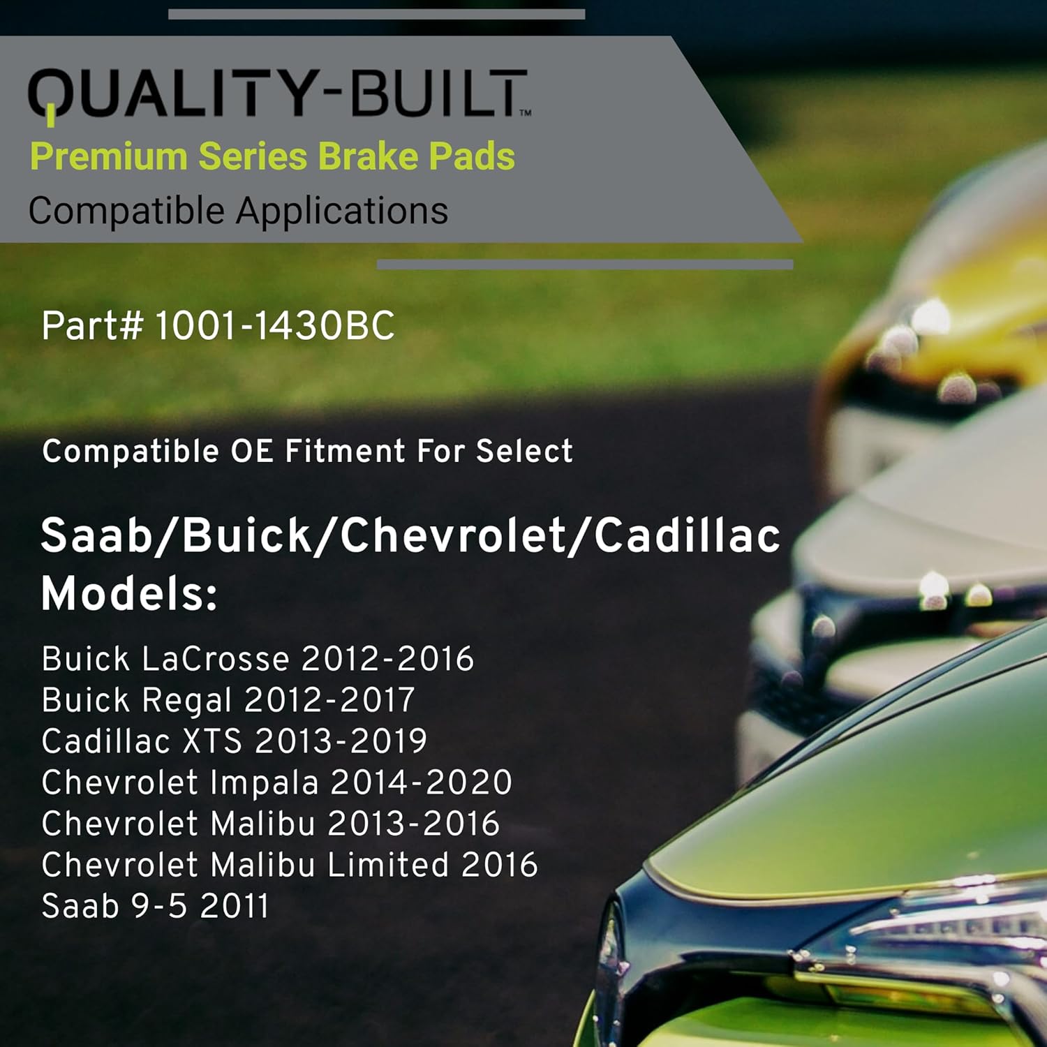 Premium Ceramic Rear Brake Pads (1001-1430BC) Compatible with 2011-2020 Buick/Cadillac/Chevrolet/Saab (9-5/Impala/LaCrosse/Malibu/Malibu Limited/Regal/XTS)