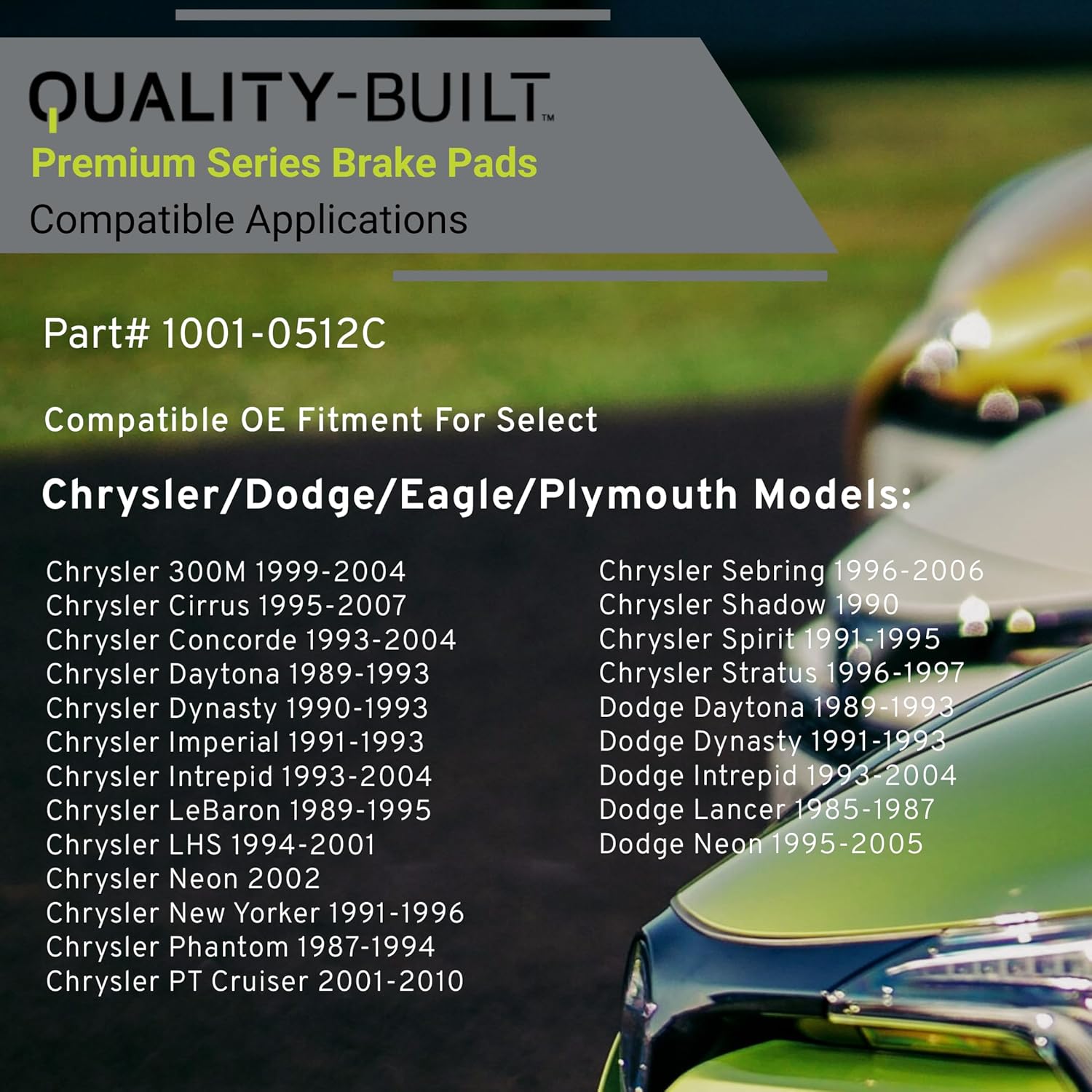 Premium Ceramic Rear Brake Pads (1001-0512C) Compatible with 1985-2010 Chrysler/Dodge/Eagle/Plymouth (300M/Acclaim/Breeze/Cirrus/Daytona/Dynasty/Imperial/Intrepid/Lancer & More)