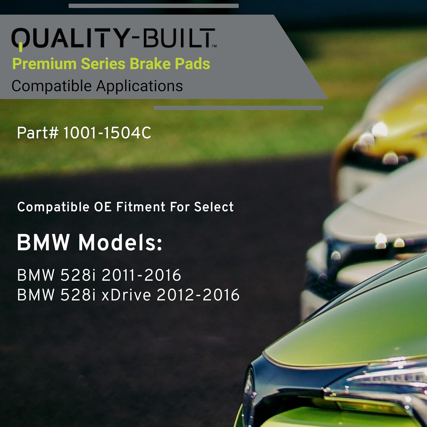 Premium Ceramic Front Brake Pads (1001-1504C) Compatible with BMW 528i 2011-2016, BMW 528i xDrive 2012-2016