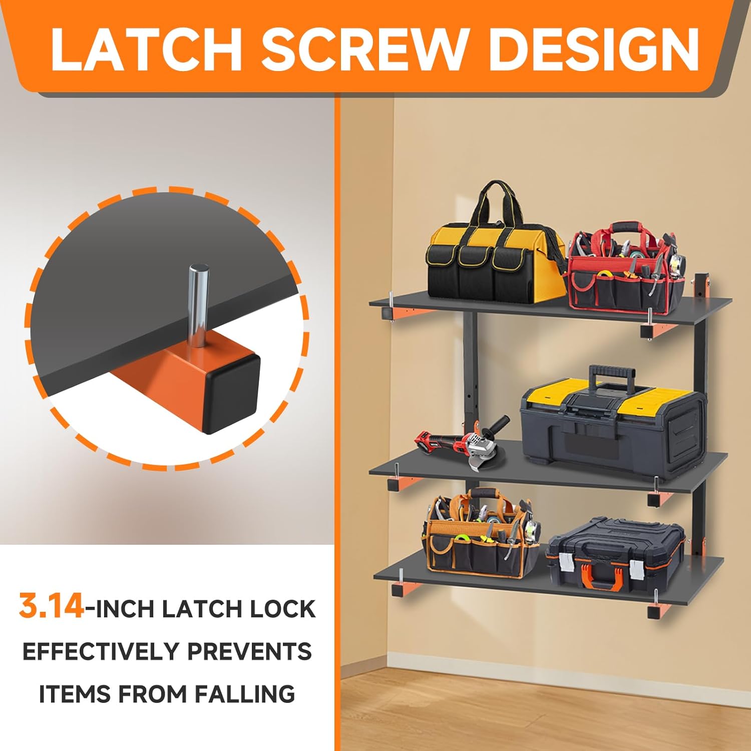 6 Pack Lumber Rack Wall Mount, Heavy Duty Wood Storage Racks, 9-Level System Organizer Shelving, 1080 LBS Capacity Hanging Garage Shelves, Orange Brackets Utility Metal Shelf for Indoor and Outdoor