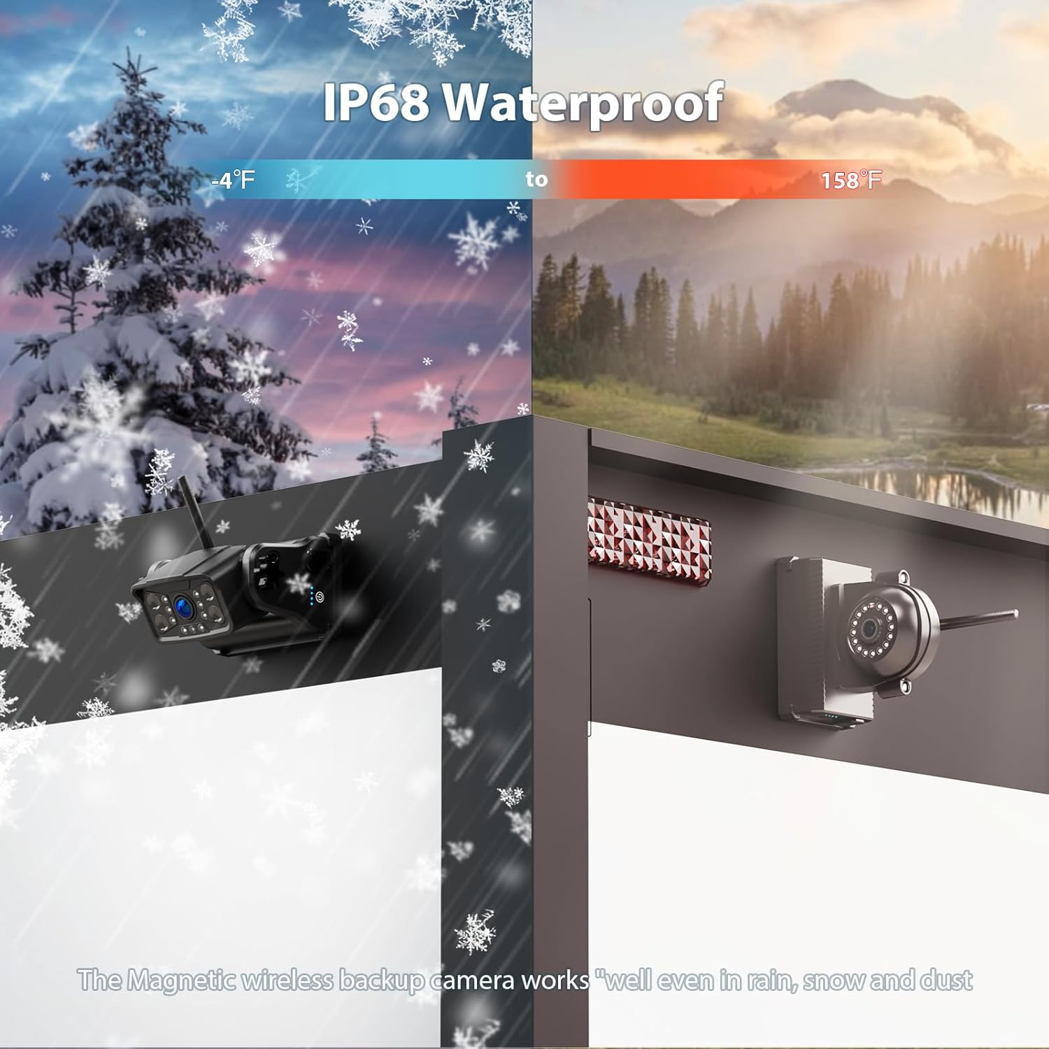 - 🚀Easy Installation: Simply plug and play the 10" Full HD IPS monitor. Strong magnetic mount lets you install this wireless backup camera in seconds—no drilling and no permanent wiring required, making it ideal for temporary setups or multi-vehicle use. NOTE:Limited to Metal Surfaces – The magnetic base won’t stick to fiberglass, plastic, or non-magnetic materials