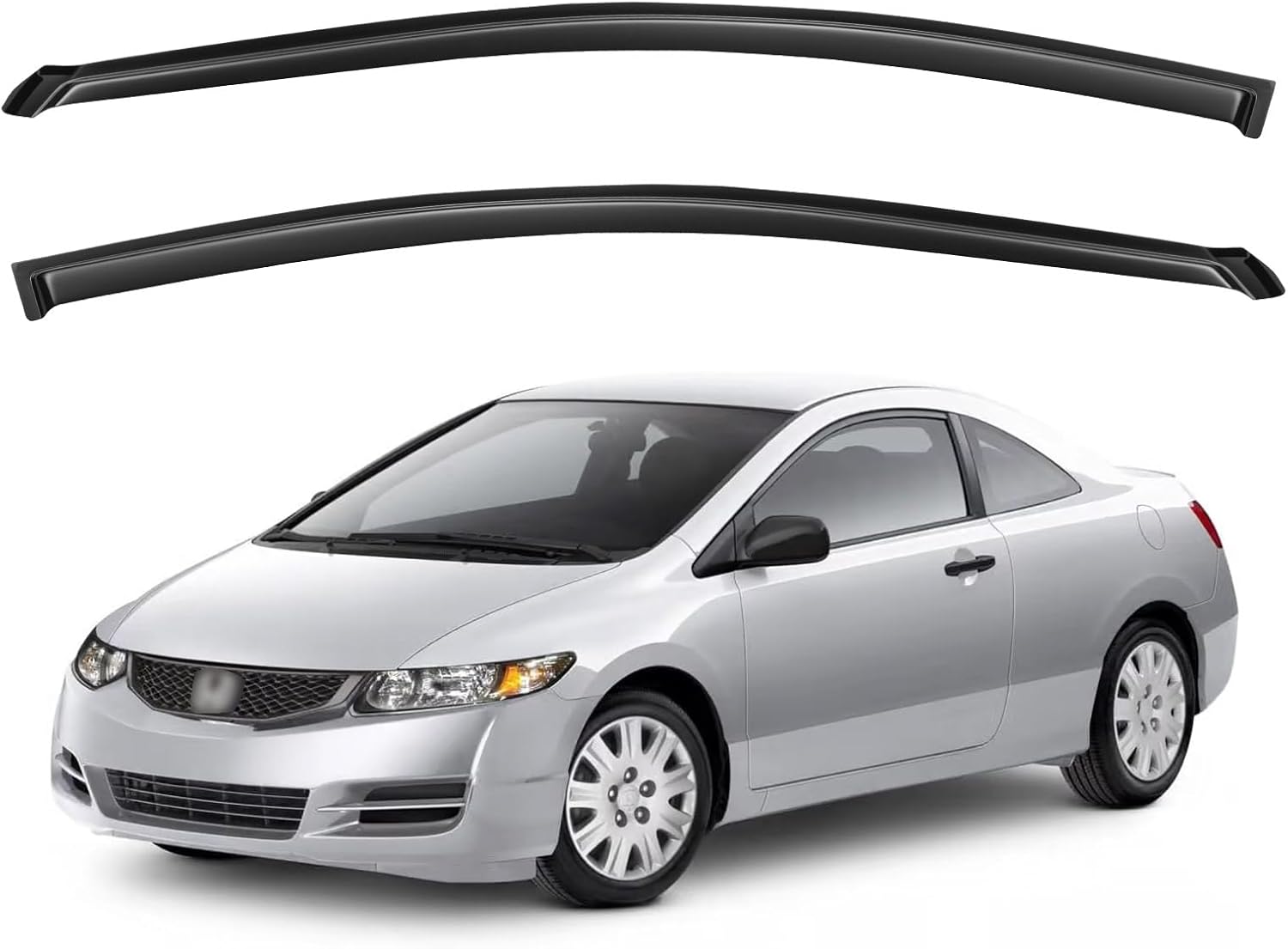 - ăPerfect FităYQAUTEC 2Pcs Window Visors Rain Guards Shield fit for 2006 2007 2008 2009 2010 2011 06 07 08 09 10 11 Honda Civic Coupe, Side Window Vent Wind Deflectors Visors Shades. (Not for Sedan)