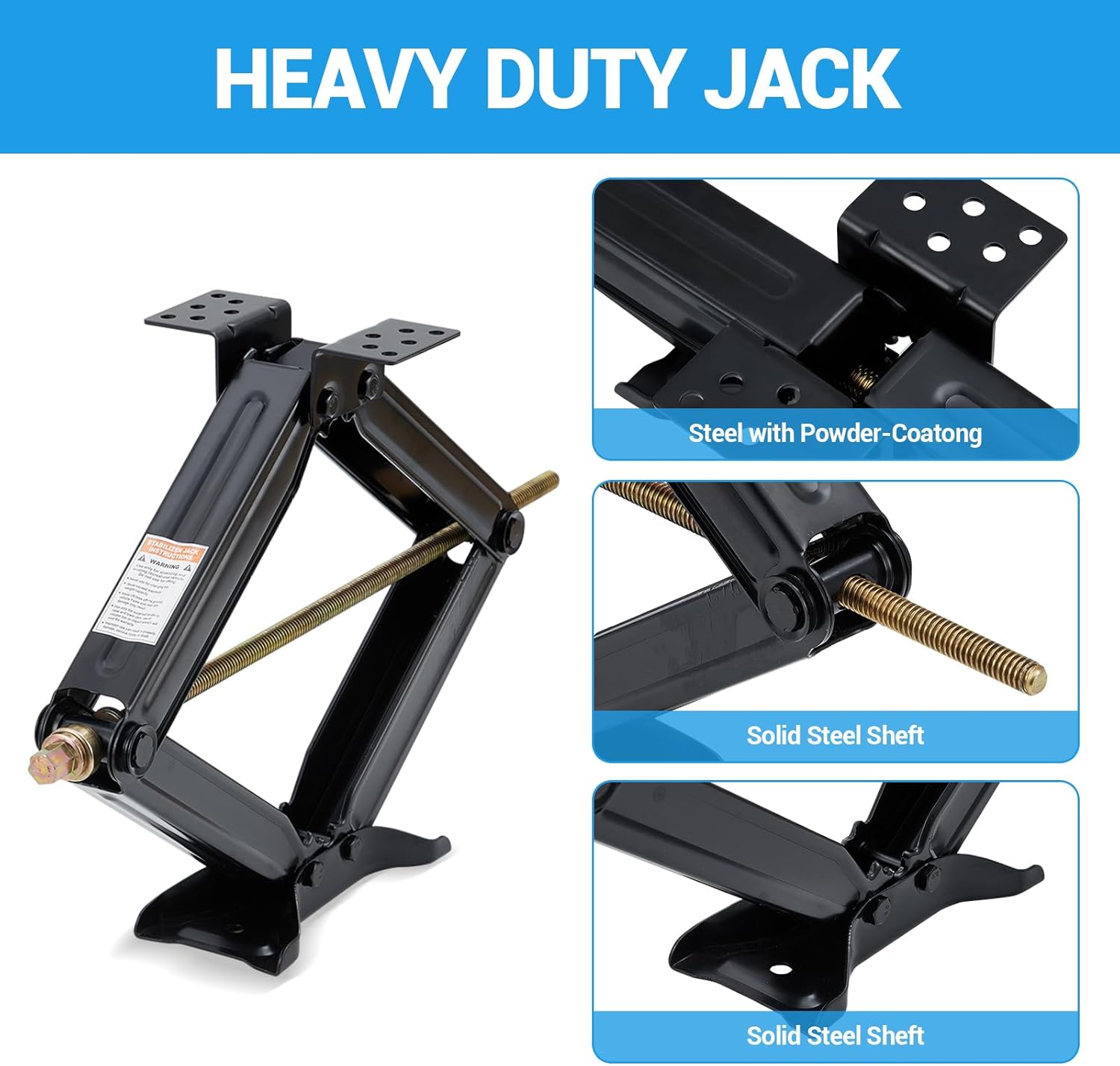 - Durable Powder-Coated Steel: Constructed from heavy duty steel with a rust-resistant powder coating, our scissor jack stabilizer is built to last through all your adventures, delivering reliable support season after season in any environment