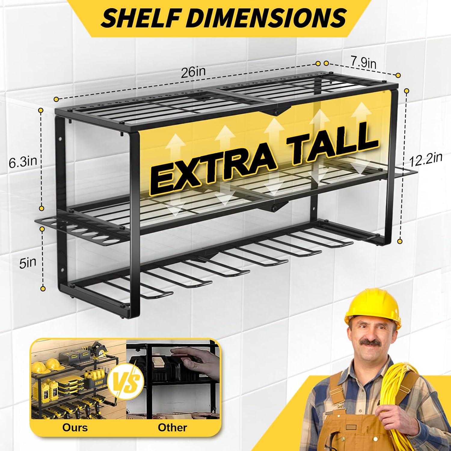 Large Power Tool Organizer Wall Mount,3 Layer Heavy Duty Tool Storage Rack Loads 150lbs,With 7 Cordless Drill Holders,Workshop,Utility Racks for Garage Workshop,Shed - Cool Gifts for Men,Dad,Husband
