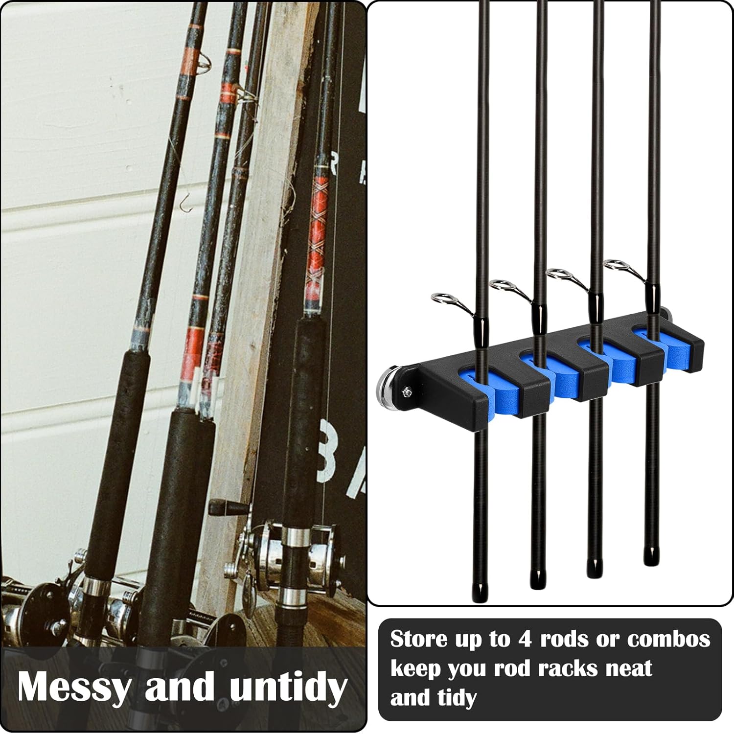 - Proper Dimension to Use: the boat rod holders measure approx 9.69 x 2.56 x 1.26 inches/ 24.6 x 6.5 x 3.2 cm, appropriate size for you to store about 6 pieces of rods, making your home or garage no longer cluttered, but organized, clean and tidy