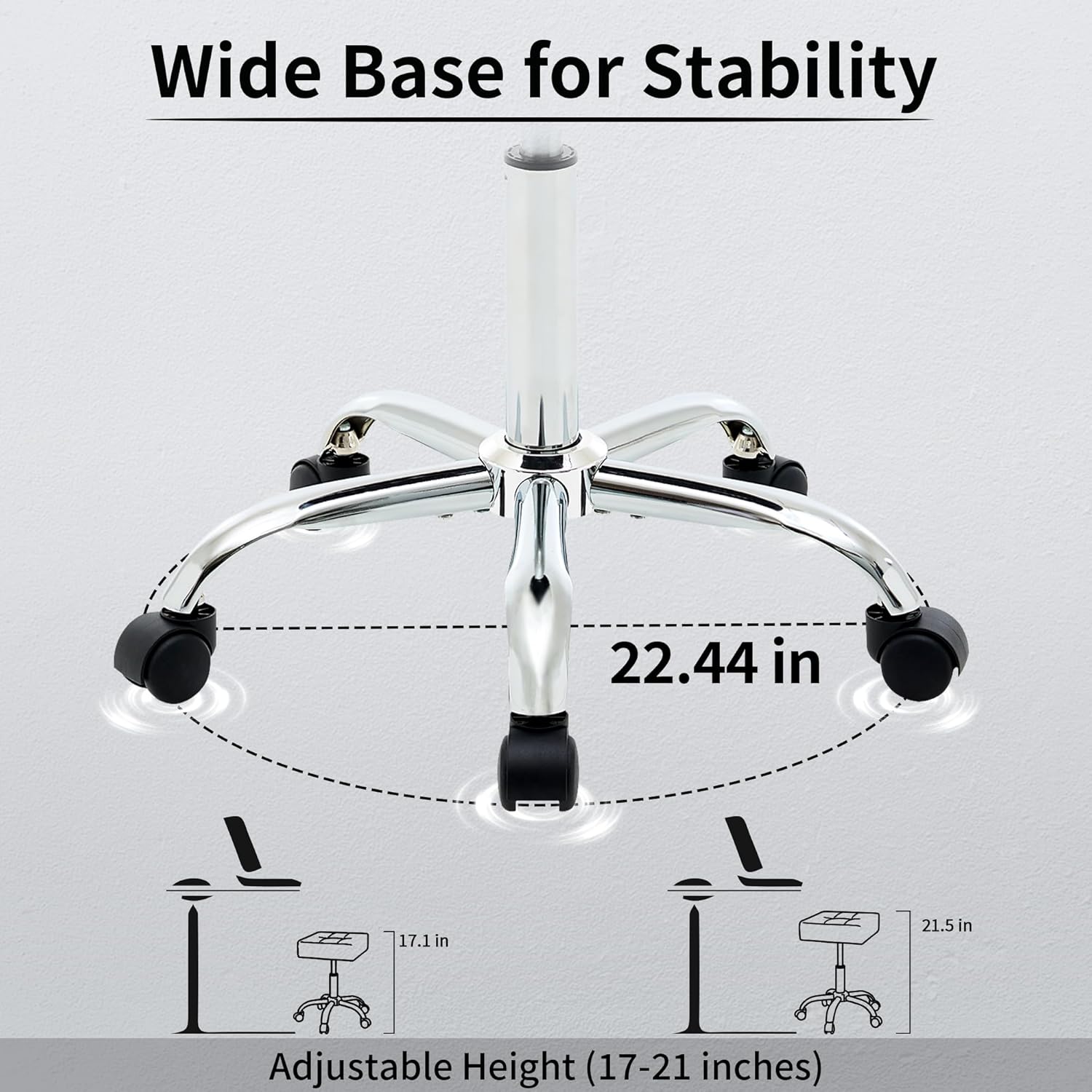 - Durable Metal Base: Made from high-strength, this base is both lightweight and sturdy. It provides stable support while making the stool easy to move, ensuring long-lasting durability and reliable performance in busy work environments