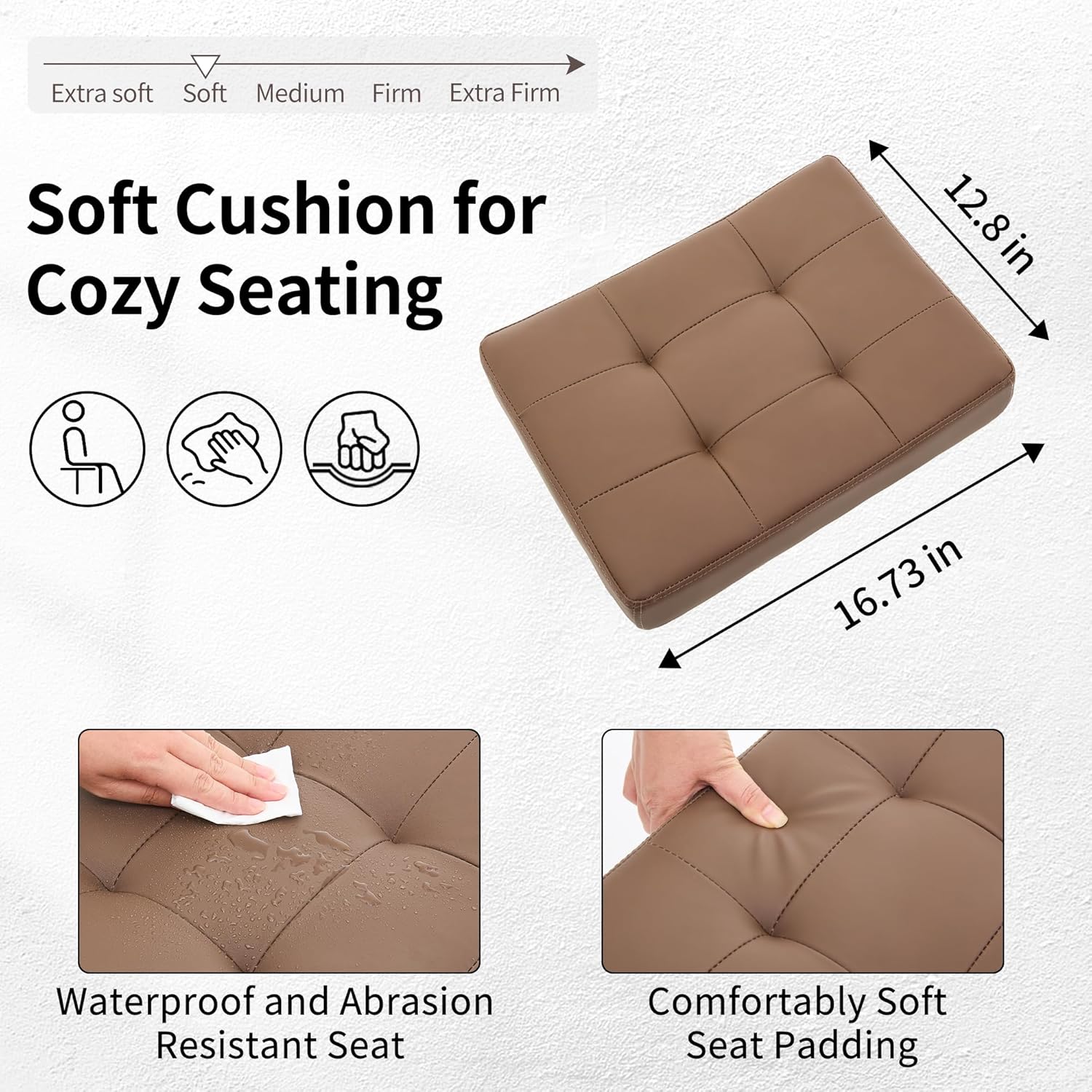 - High Quality and Durable Fabric: The seat cushion of our swivel stool is crafted from high-quality faux leather that is water-resistant and easy to clean with a damp cloth. Both the seat and backrest are padded with high-density foam, providing lasting comfort even during extended periods of use
