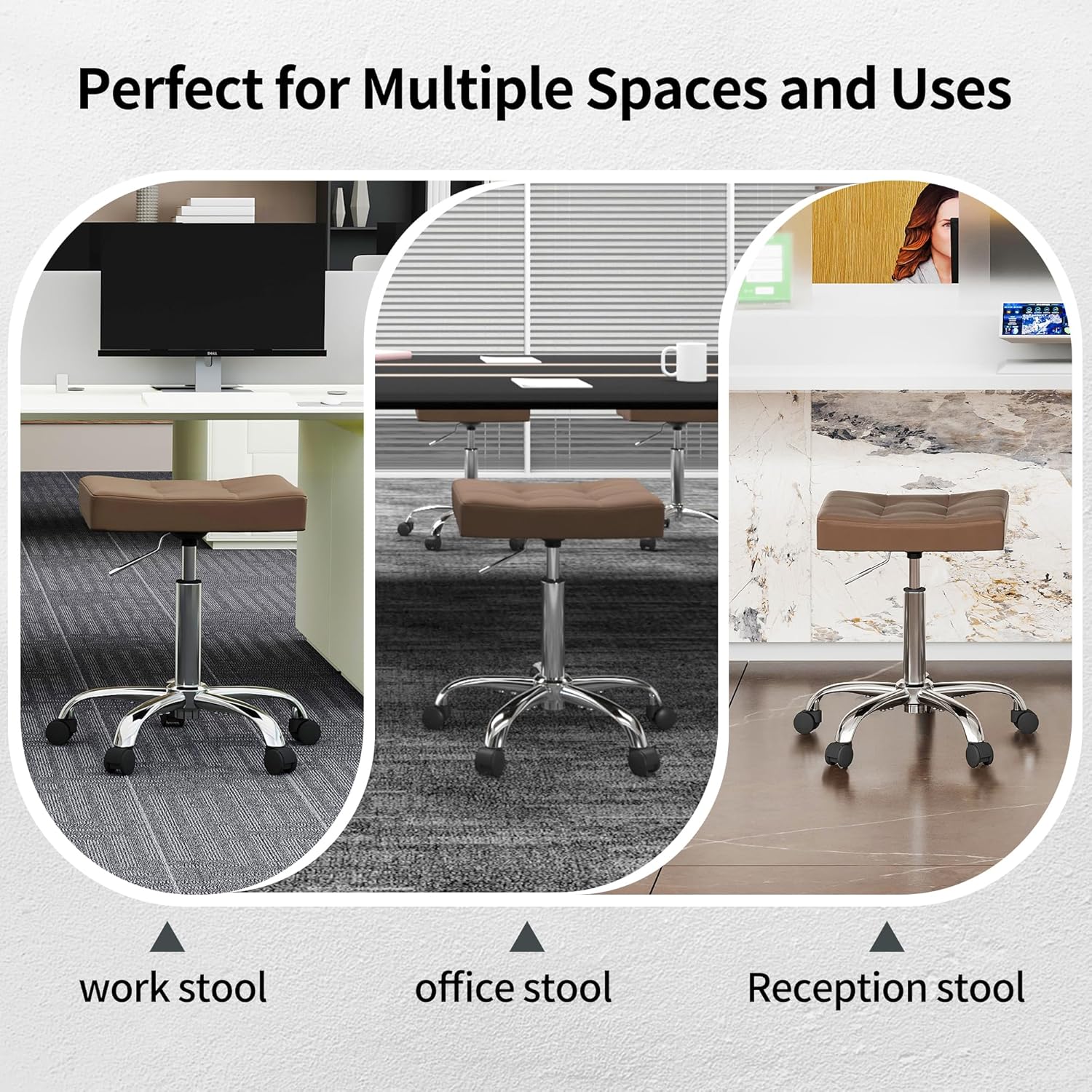 - Multi-Purpose Stool for Home and Work: This rolling stool features adjustable height to accommodate different tasks and users. Suitable for home use at vanities, desks, or kitchens, it offers easy mobility and fits various room styles. In professional settings such as offices, nail salons, barbershops, tattoo studios, beauty salons, medical facilities, or retail spaces, it provides stable seating and supports comfortable positioning during use