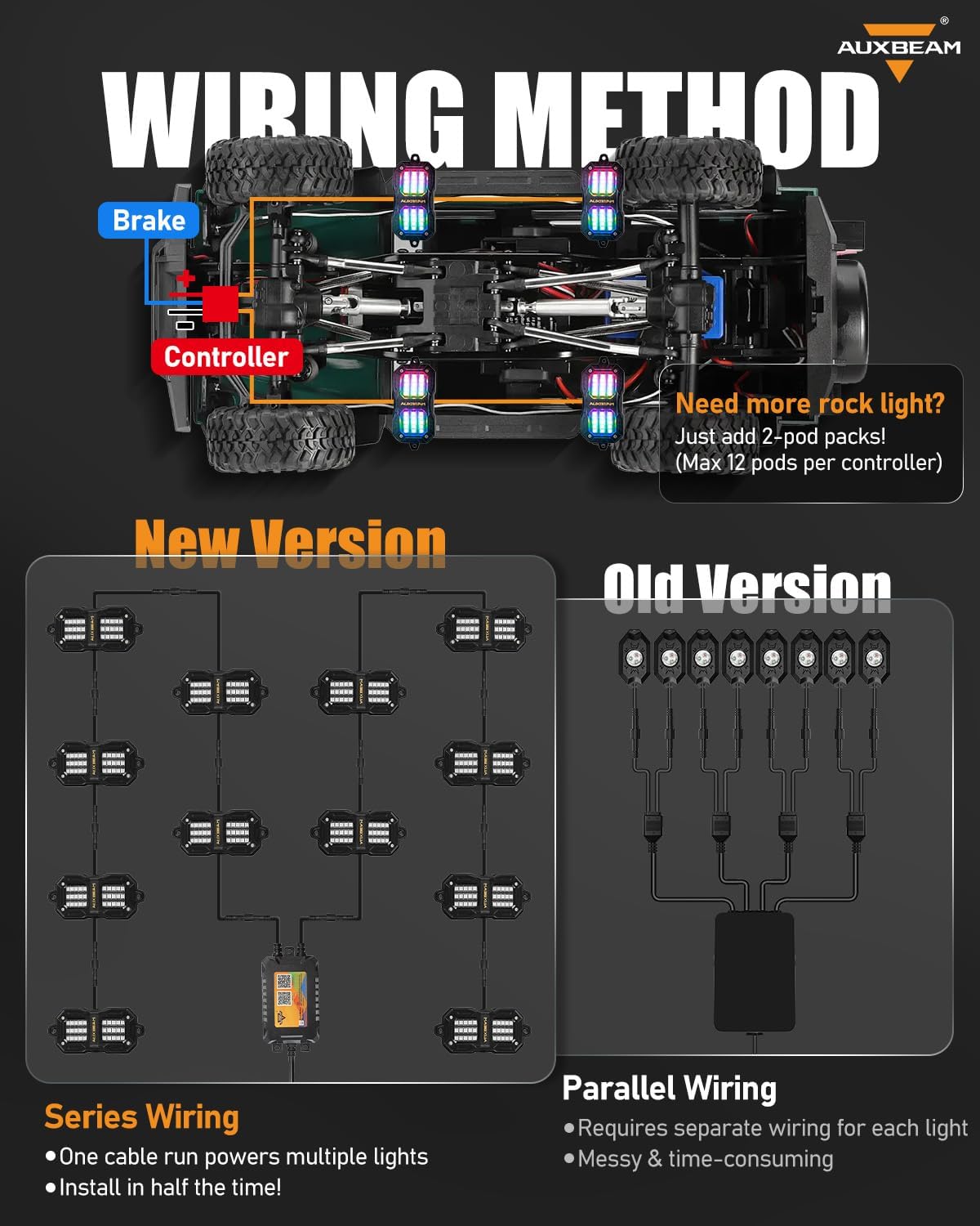 - ‌EXPAND YOUR ROCK LIGHT SYSTEM:‌ Simply expand your existing setup with 2-pod packs. To ensure optimal performance, limit each controller to a maximum of 12 pods rock light