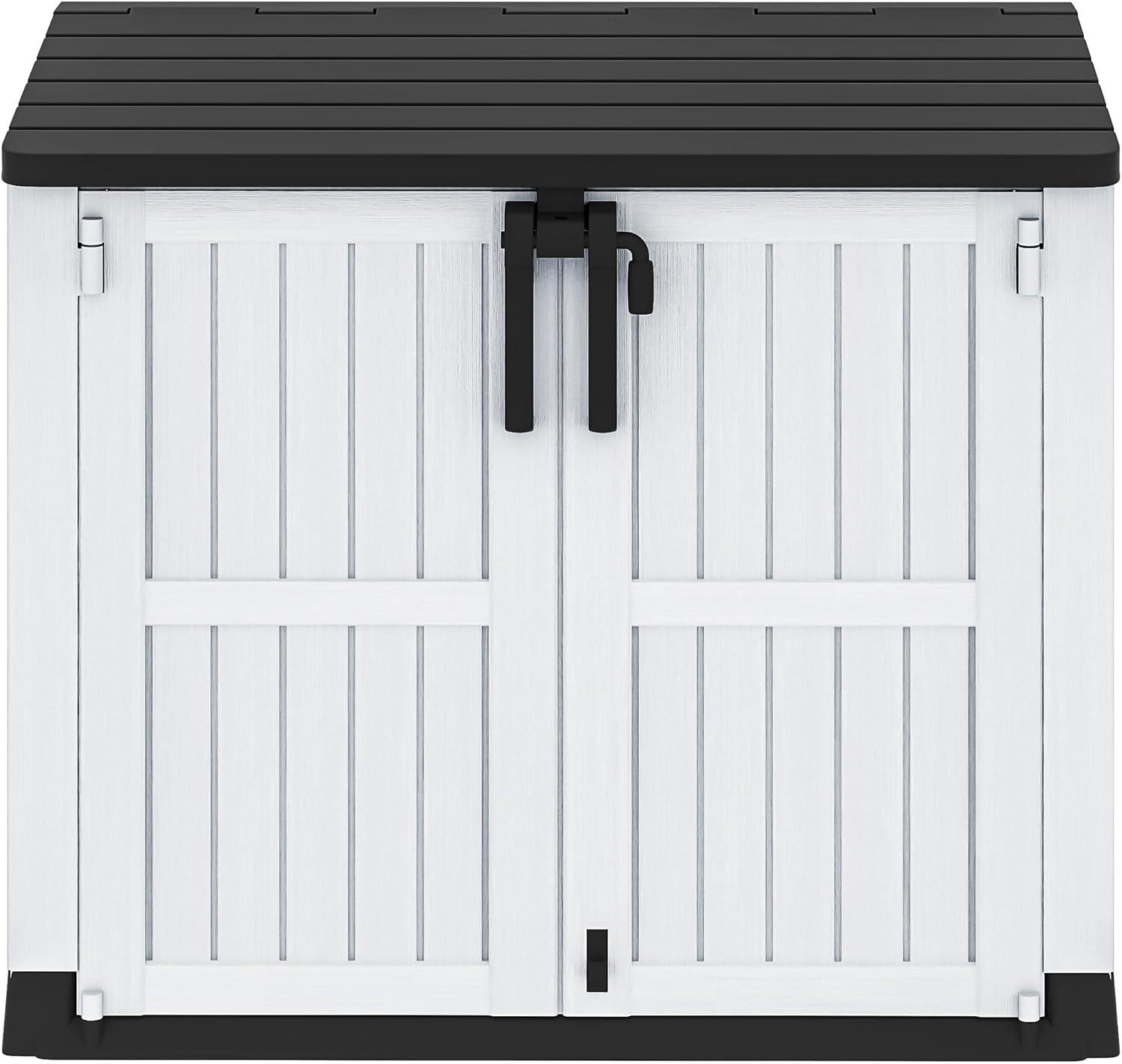 - Multi-Use Outdoor Storage: Versatile 36 cu ft cabinet functions as a garden storage shed, garbage bin shelter, tool house, or even a cozy pet nook, tailored to fit various outdoor storage needs with sleek light gray imitation wood grain design