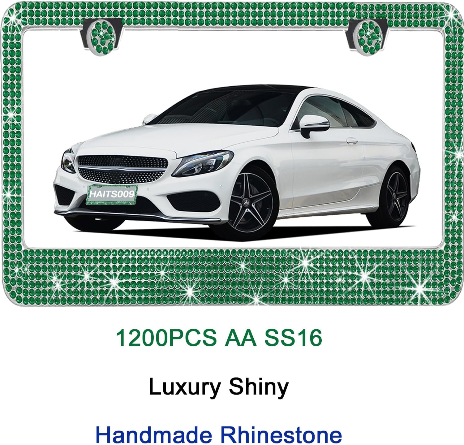 2 Pack License Plate Frames for Women, Sparkly Rhinestone Diamond Car Accessories with Glitter Crystal Caps (Green(2PCS))
