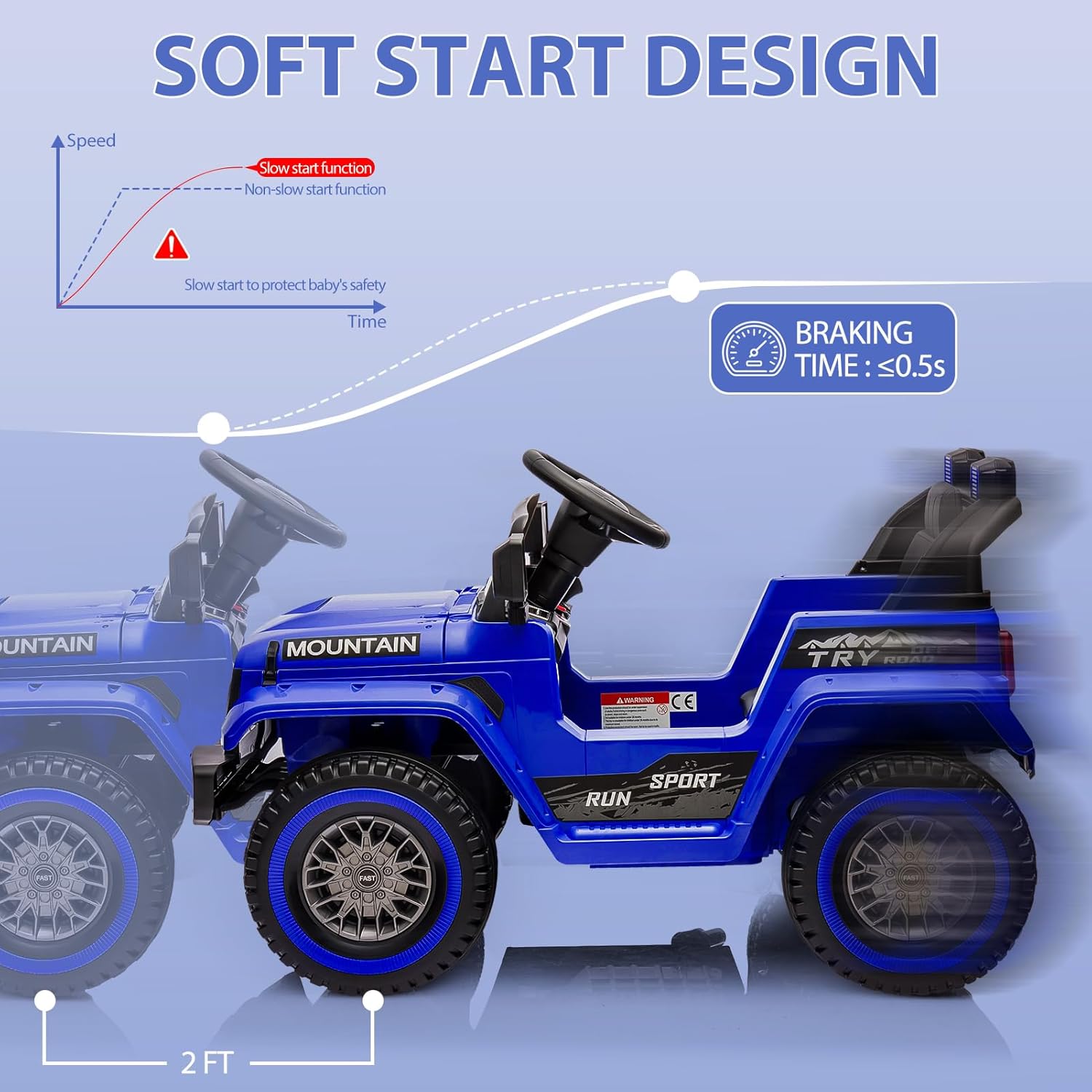 - Safety as First Priority - Our ride on truck comes with an adjustable seat belt that prioritizes your child's safety. The one-touch Safety brake ensures quick and effective stopping in case of Safety . The rear wheels of the car are equipped with shock-absorbing springs to reduce the impact during driving.