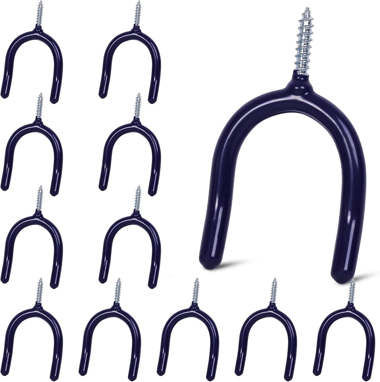 12 Pack Garage Storage System Steel U Hooks with Anti-Slip Coating Home Improvement and Organization Screw in Hooks Easy Wall Mounting Heavy Duty Bike and Ladder (Blue, 12 Pack)