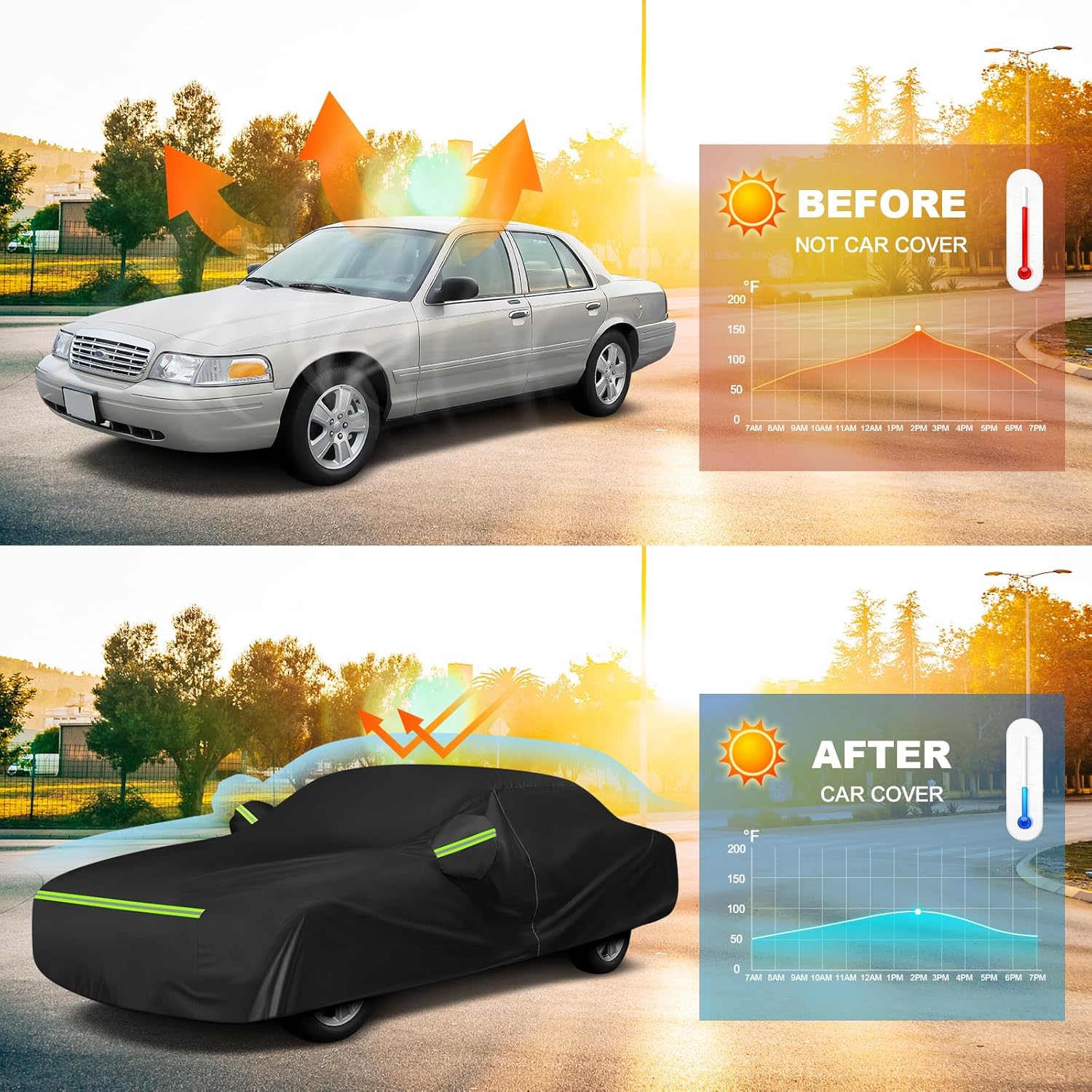 QUNSUNUS Waterproof Car Cover for Chevy Caprice 1966-1970 and 1977-1996, All Weather Outdoor Crown Victoria Cover 1992-2012 with Straps and Zipper