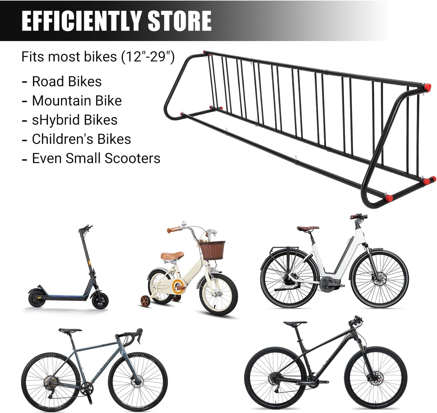 - [VERSATILE PARKING SOLUTION] From car bike transport to commercial floor bike racks, this stand adapts to any need. Use in garages, retail spaces, or outdoor areas for tidy, secure bicycle parking.