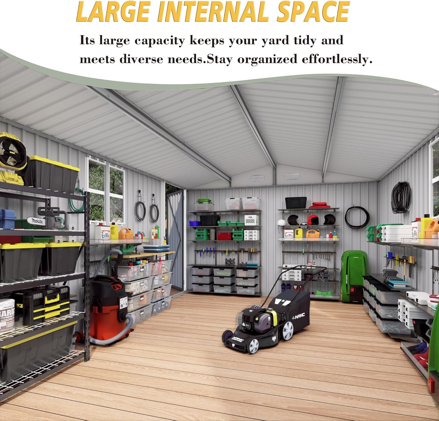 - MULTI-APPLICATION OUTDOOR SHED: The metal shed can better store your tools such as lawn mowers,bicycles,BBQ grills,and more. You also can use this storage shed as a pet shelter or greenhouse. Stay organized effortlessly.
