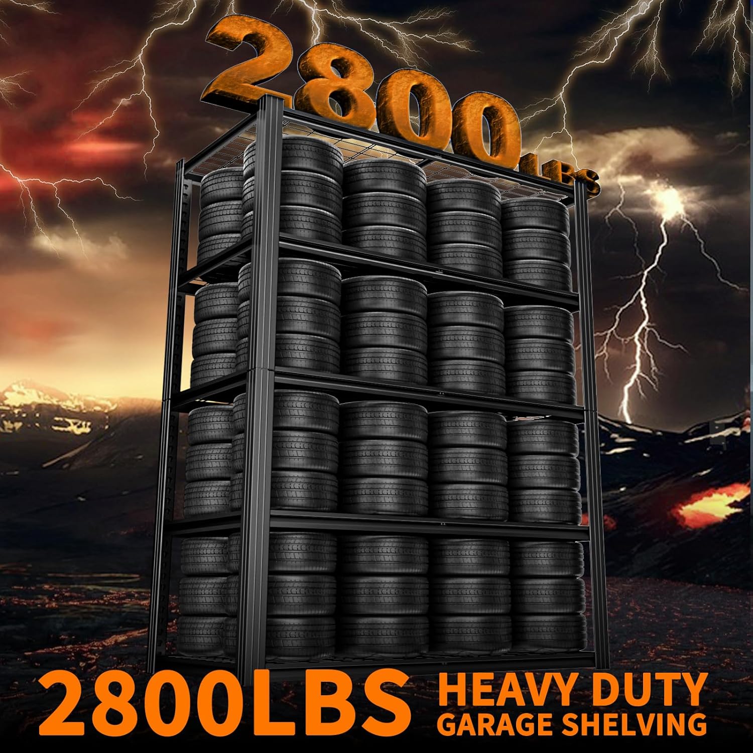 - 【2800 LBS Heavy Duty Shelving】This heavy duty garage shelving unit has thickened double metal legs. Made of high-quality metal, each solid thickened metal shelving with 1 upgrade support strip beneath can hold up to 560 lbs, with a total bearing capacity of 2800 lbs, which makes industrial garage shelves heavy duty more stable and solid than normal metal shelves for storage and more stuff can be stored.
