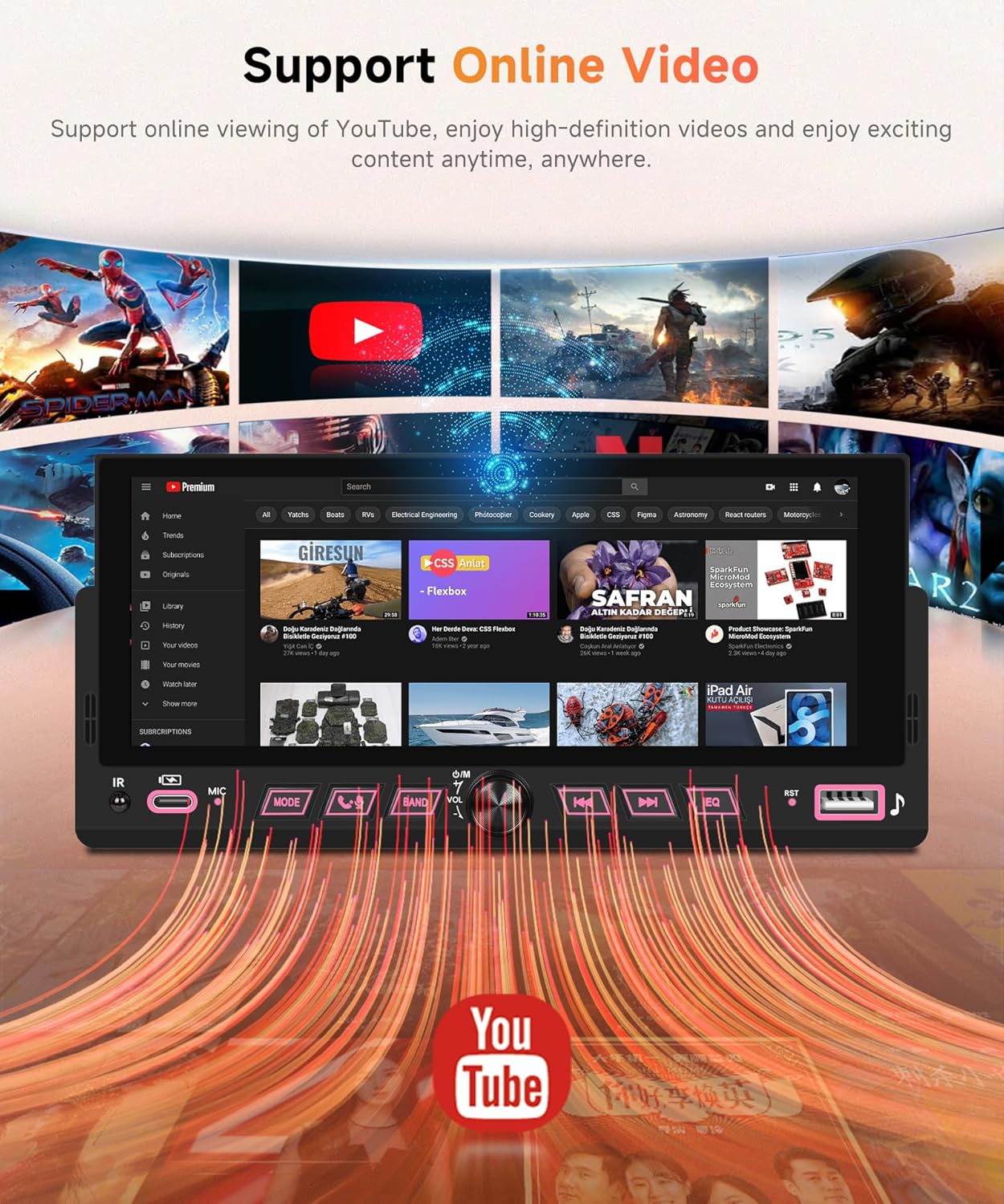 - Wireless Carplay & Wireless Android auto & Mirror Link: Single din touch scren car radio support wireless Carplay and wireless Android auto, connect to mobile phone, access mobile phone address book, mail, notification, map navigation, music, video and other information, and realize voice control. Supports IOS/Android mirror link function, You can mirror the phone interface to car stereo