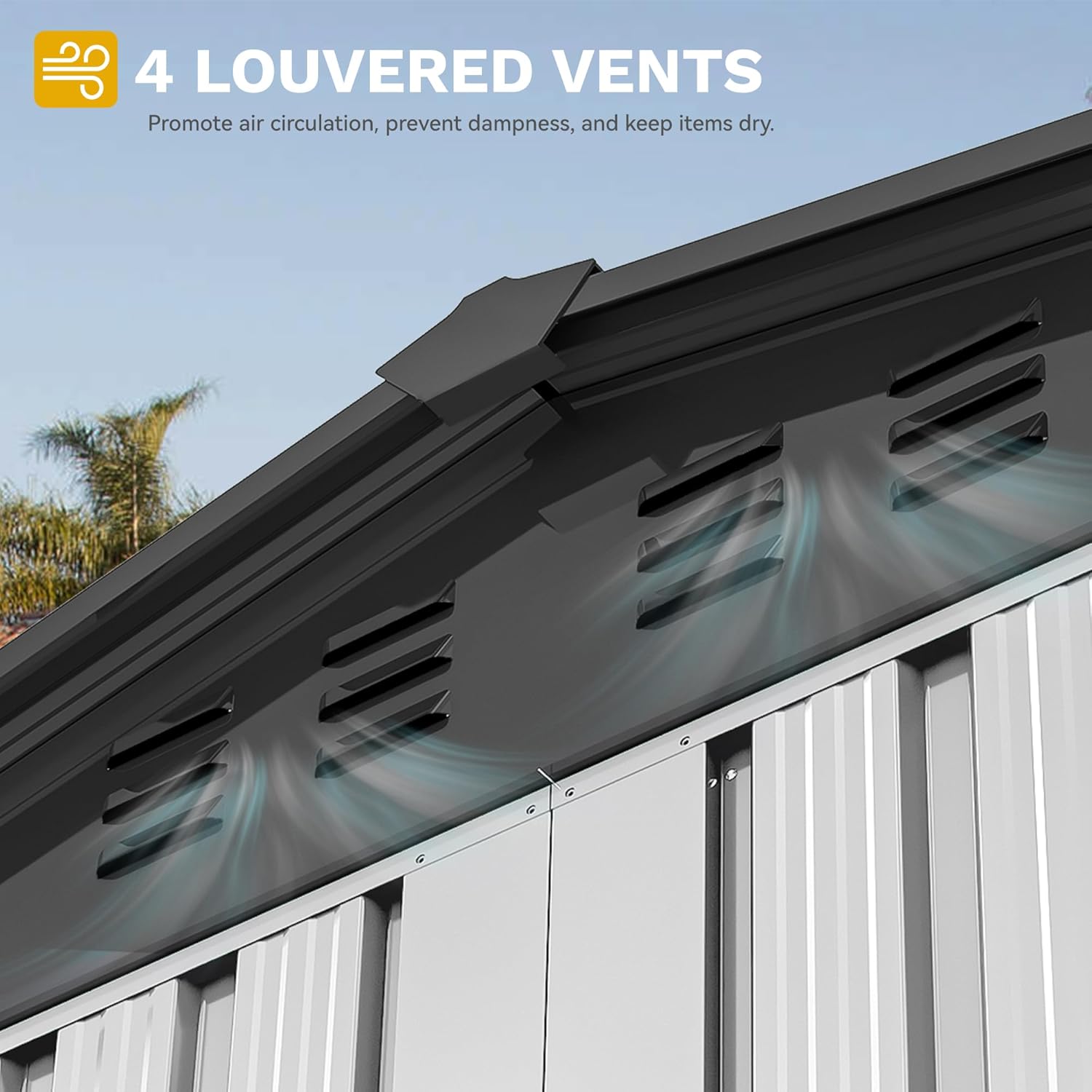 DWVO 8x6FT Outdoor Storage Shelter, Roomy Steel Tool Shed with Secure Entrances & Air Circulation for Patio, Lawn, and Backyard, Ideal for Storing Garden Gear, Lawn Tools, and Bikes, White