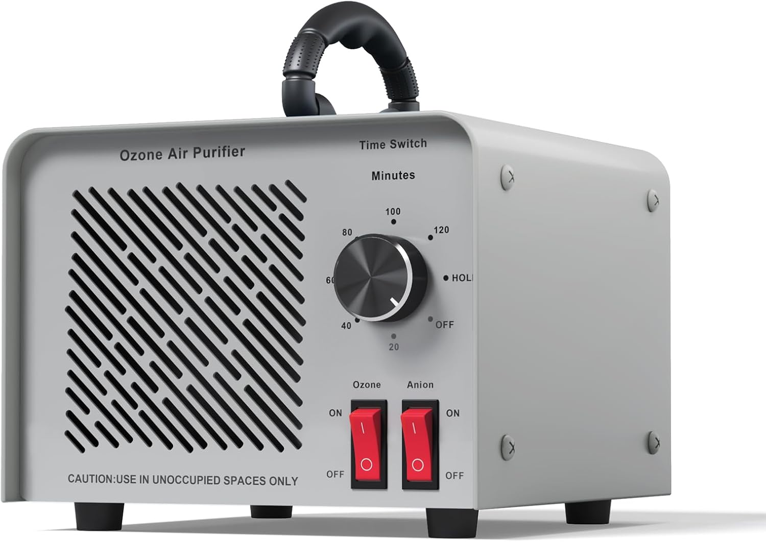 - ăPOWERFUL 120,000MG/H OZONE OUTPUTă Designed with state-of-the-art exclusive patented 4-layer cubic ceramic ozone plates, it quickly breaks down and eliminates stubborn odors in homes, cars, basements, and industrial environments, including pet odors, smoke. Completely solve the odor problem that cannot be handled by traditional cleaning methods, and make the air fresh and rejuvenated
