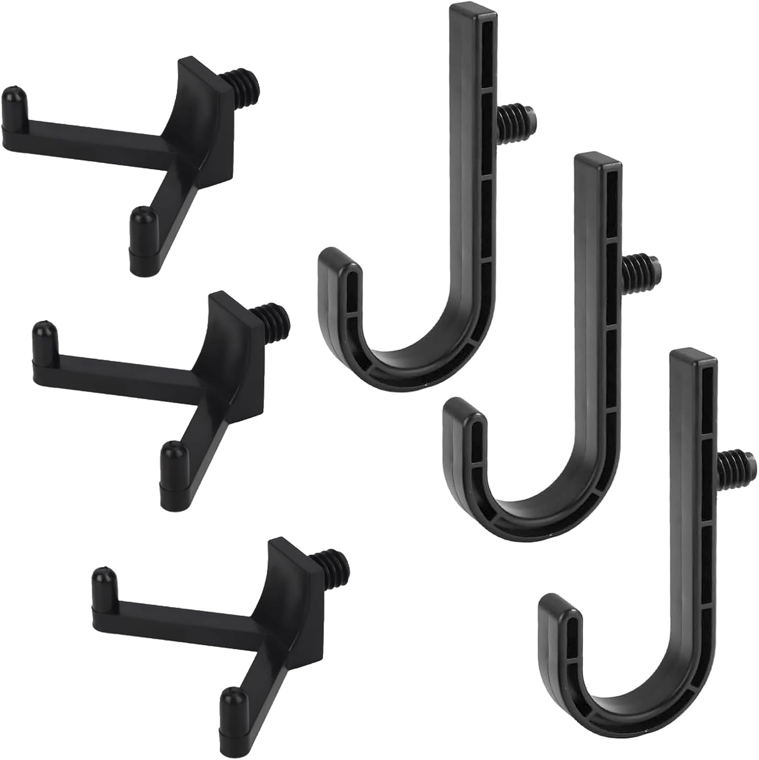 WIN&YING 6 Pack Storage Shed Hooks for Suncast, Black Single-Head J Hook & Double-Head V Hook Set, Storage Sheds Tool Hangers Organization Accessories for Hanging Shovels & Rakes & Scissors Tools