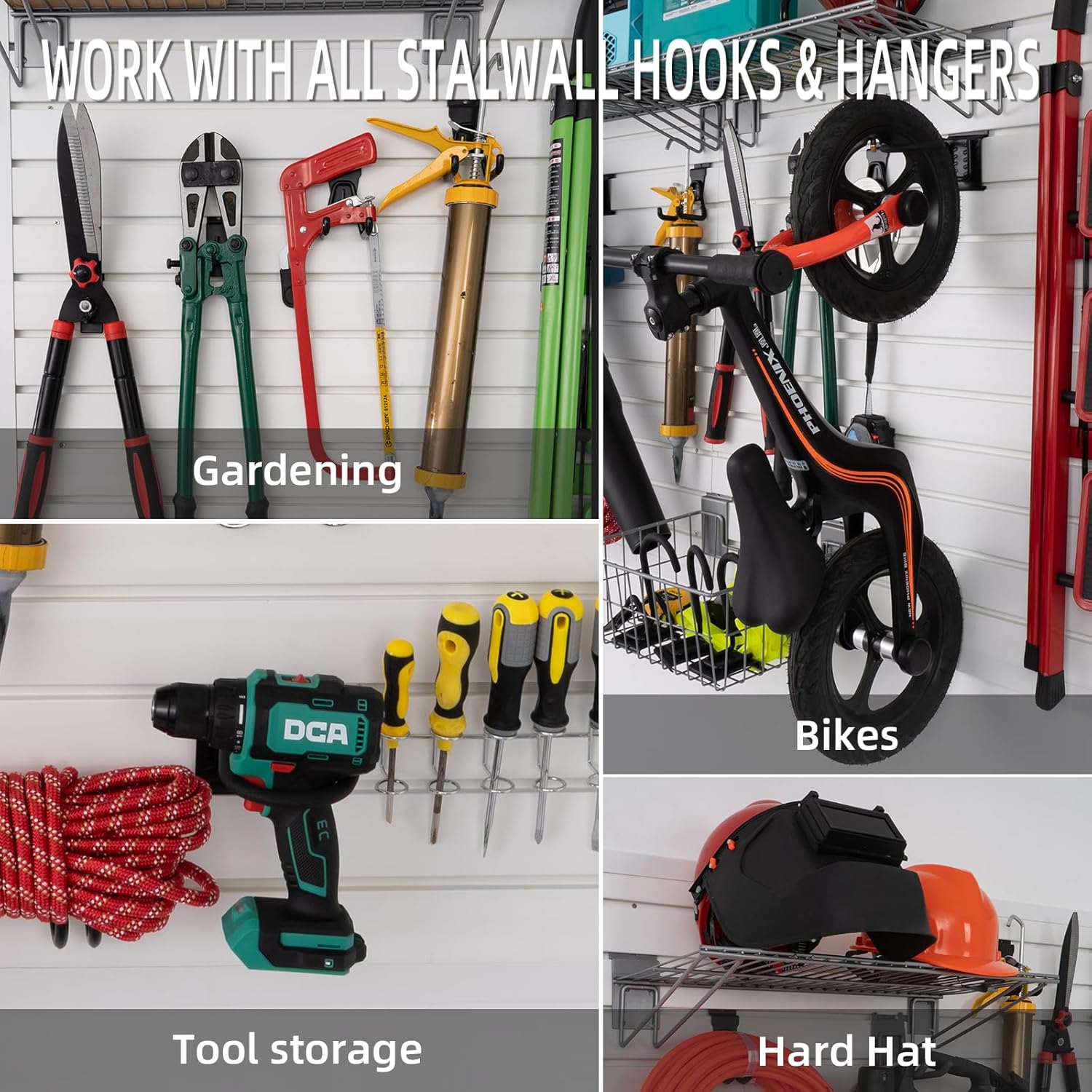 - MAKE FULL USE OF YOUR SPACE: Unleash the true potential of your garage wall organizer for tools with the garage slat wall panel. By making smart use of vertical wall space, you can revolutionize your garage into a seamlessly organized and efficient area. Bid farewell to a messy garage and welcome a meticulously optimized space that maximizes every inch available. Enjoy effortless access to your tools, equipment, and accessories, all while crafting a visually captivating environment.