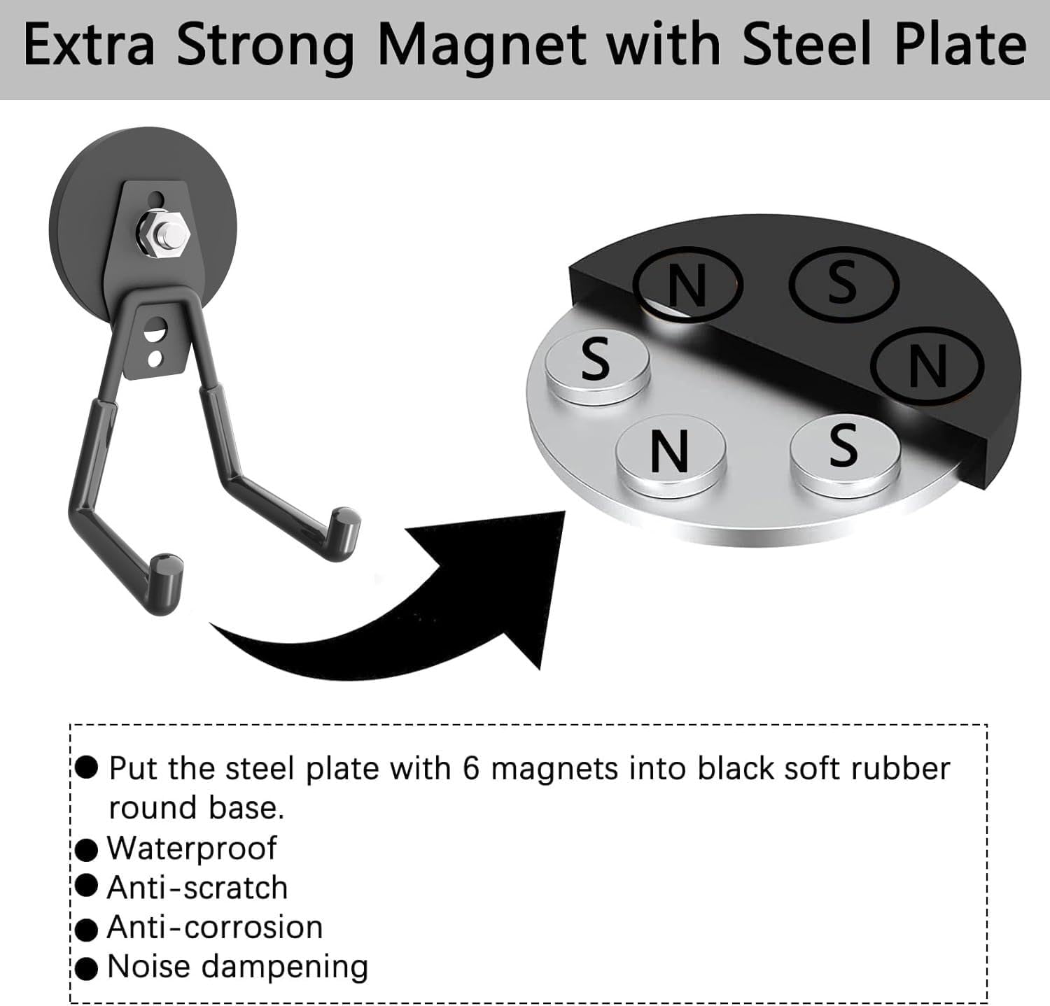 - š§²[No-Scratch Magnetic Hooks]: These hooks are tough and long-lasting. The round, black, non-slip rubber coating on the bottom keeps things in place, protects surfaces from scratches, and prevents slipping and rusting. They work great both indoors and outdoors.
