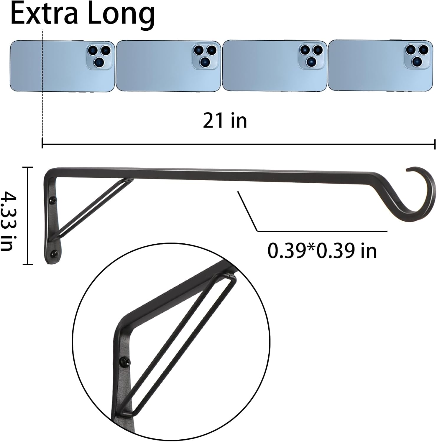 - 📏 Maximum Reach for Versatile Decor Reach further with 21" length! Securely hang large plant baskets, bird feeder hangers, or lanterns on high walls/balconies. 2-pack value transforms two spaces instantly—no more unstable short brackets!