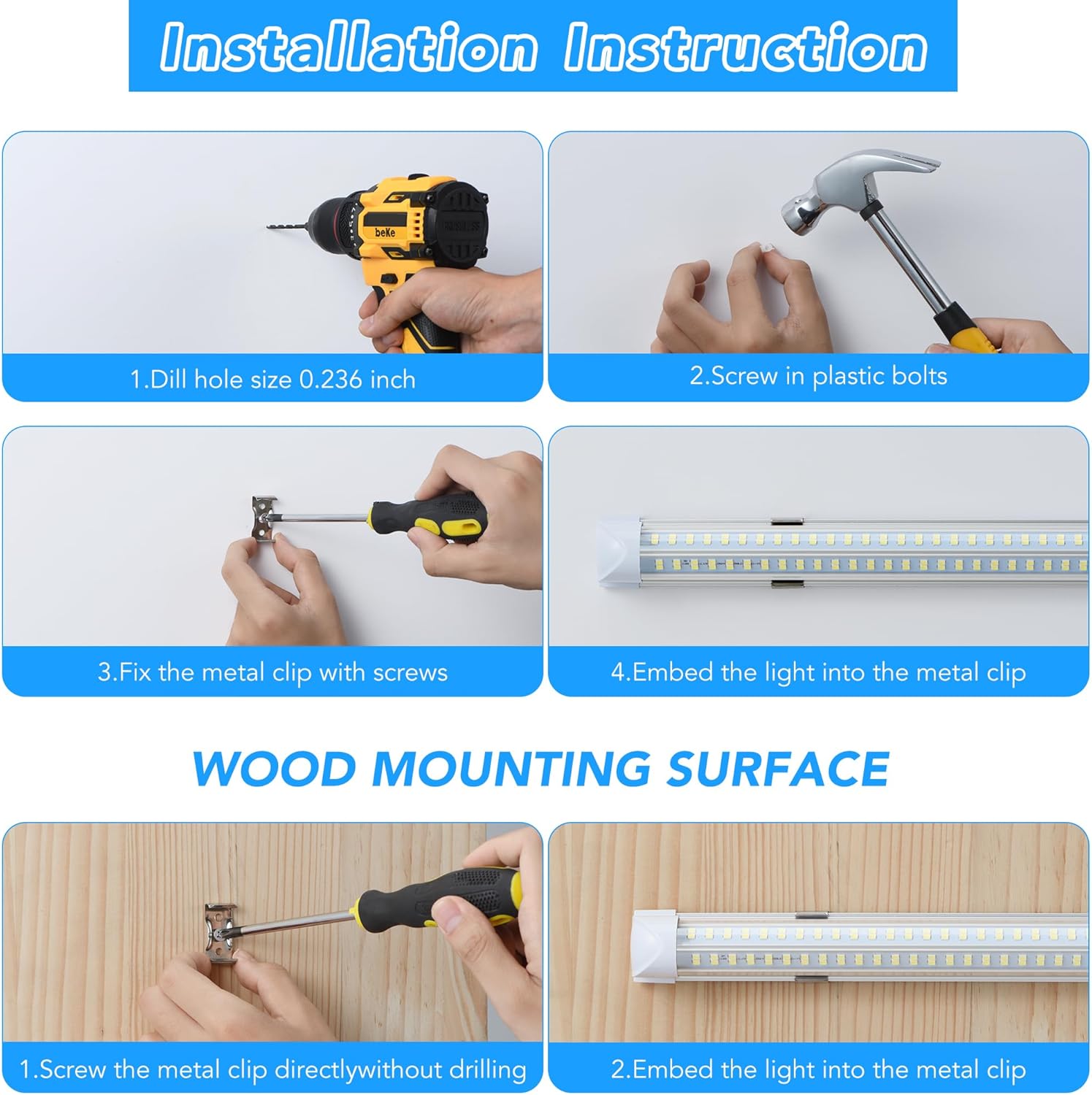 - [Ultra-Bright 270° V-Shape LED Shop Lights]Get commercial-grade brightness! Our 8FT LED lights feature 160LM/W & a 270° V-shape design for uniform, flicker-free daylight (6000-6500K). Perfect garage led lights or workshop led light fixture, illuminating every corner. Outshines fluorescents, slashes energy costs.