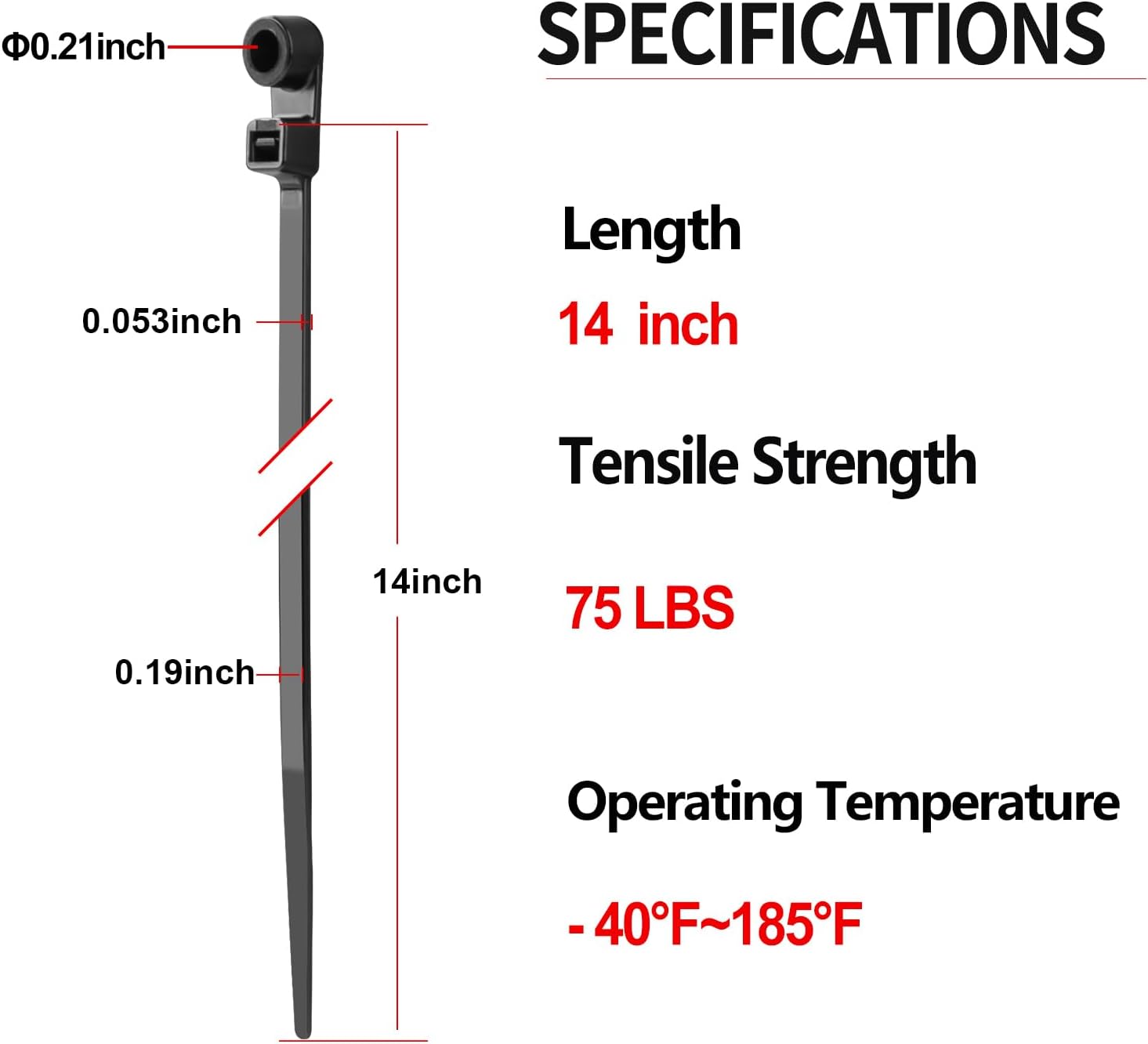 - 【High tensile strength】Pack of 1000 14 Inch Long Black Cable Zip Ties. Heavy Duty Cable Ties with supporting up to 70LB Strong Tensile Strength. 0.2inch Wide