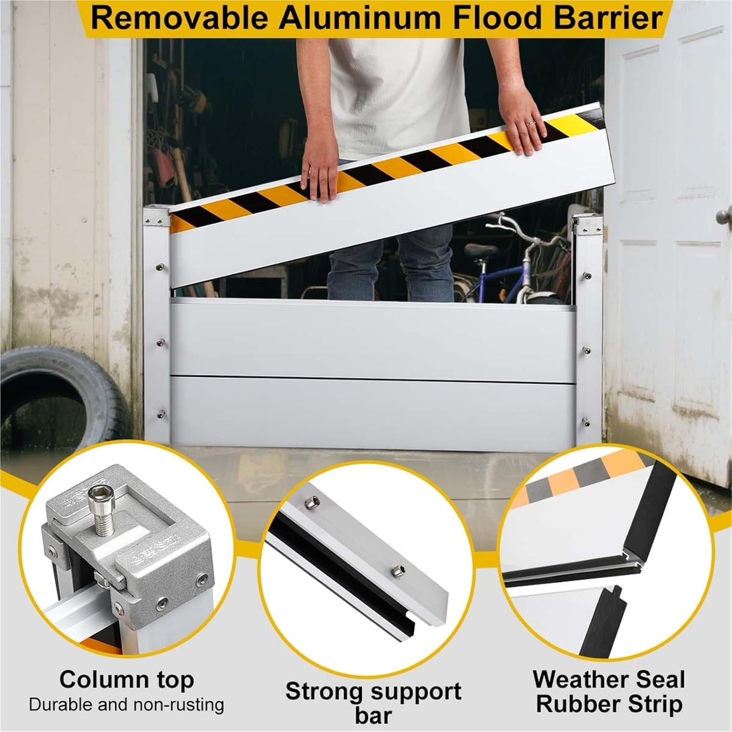 - ā Aluminum Alloy Flood Barriers for Home: The Flood Protection Barrier is made of heavy-duty, 4cm (1.5 inch) thickened aluminum panels and aluminum columns, with an oxidized surface for added durability. Surrounded by IPX6-rated ABS rubber strips, it provides reliable partitioning and flood protection, preventing damage caused by severe weather both indoors and in dry areas