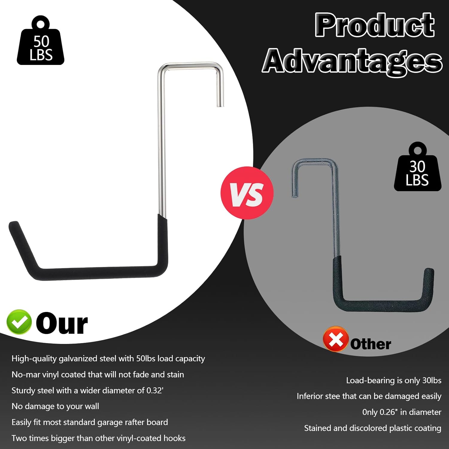 - [Indoor/Outdoor ORGANIZER] Perfect for hanging indoor equipment such as bicycle, heavy garage items, fiberglass ladders, sports gear. Ideal outdoor fence hooks for pool equipment, heavy plant holders, etc.