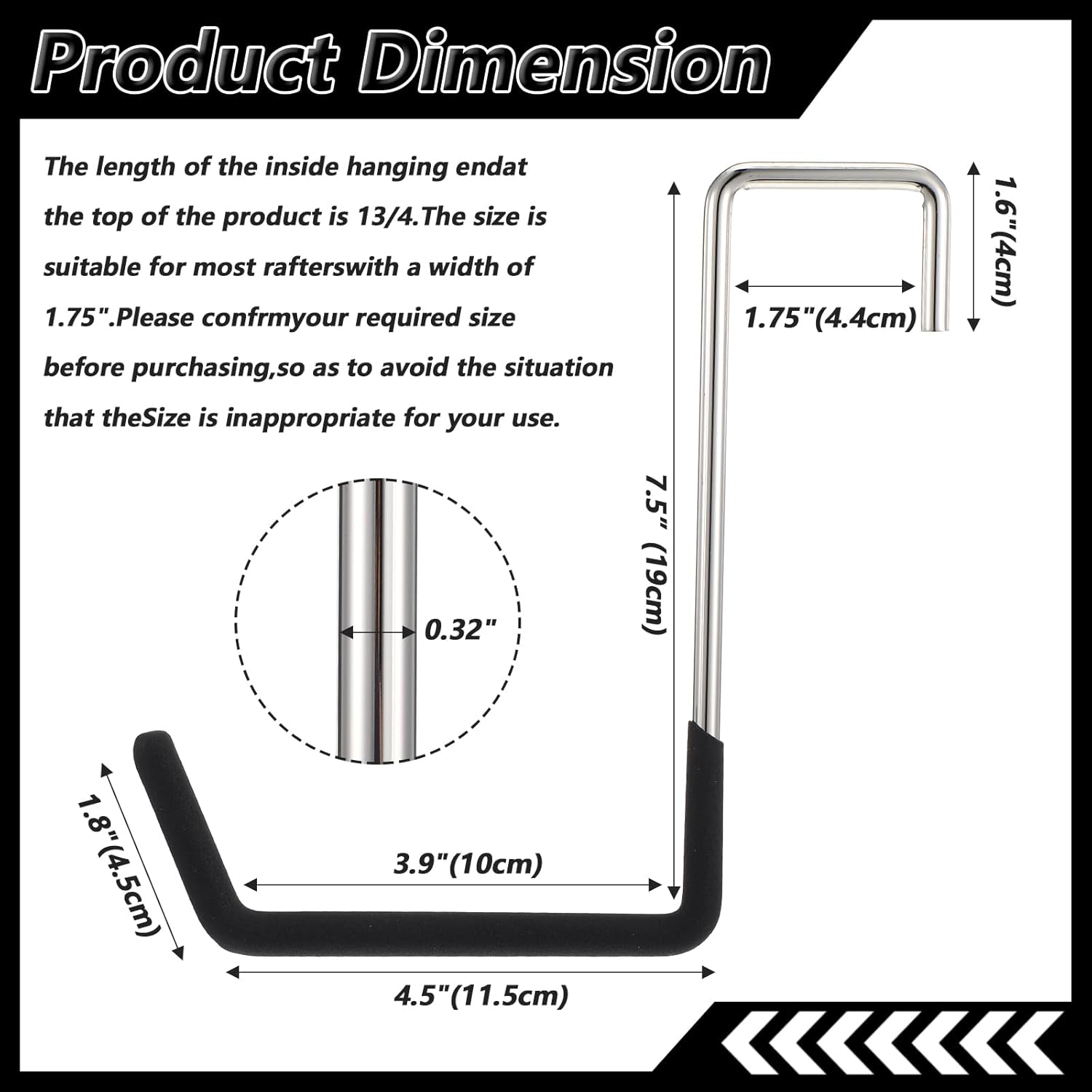 - [EAZY INSTALLATION] Our hook has a strong tough grip over rafters without the use of any screws. No holes need to be drilled. Move around easily as you wish. Save your time and ease your pain. Our sturdy hooks would easily fit your standard garage rafter board!