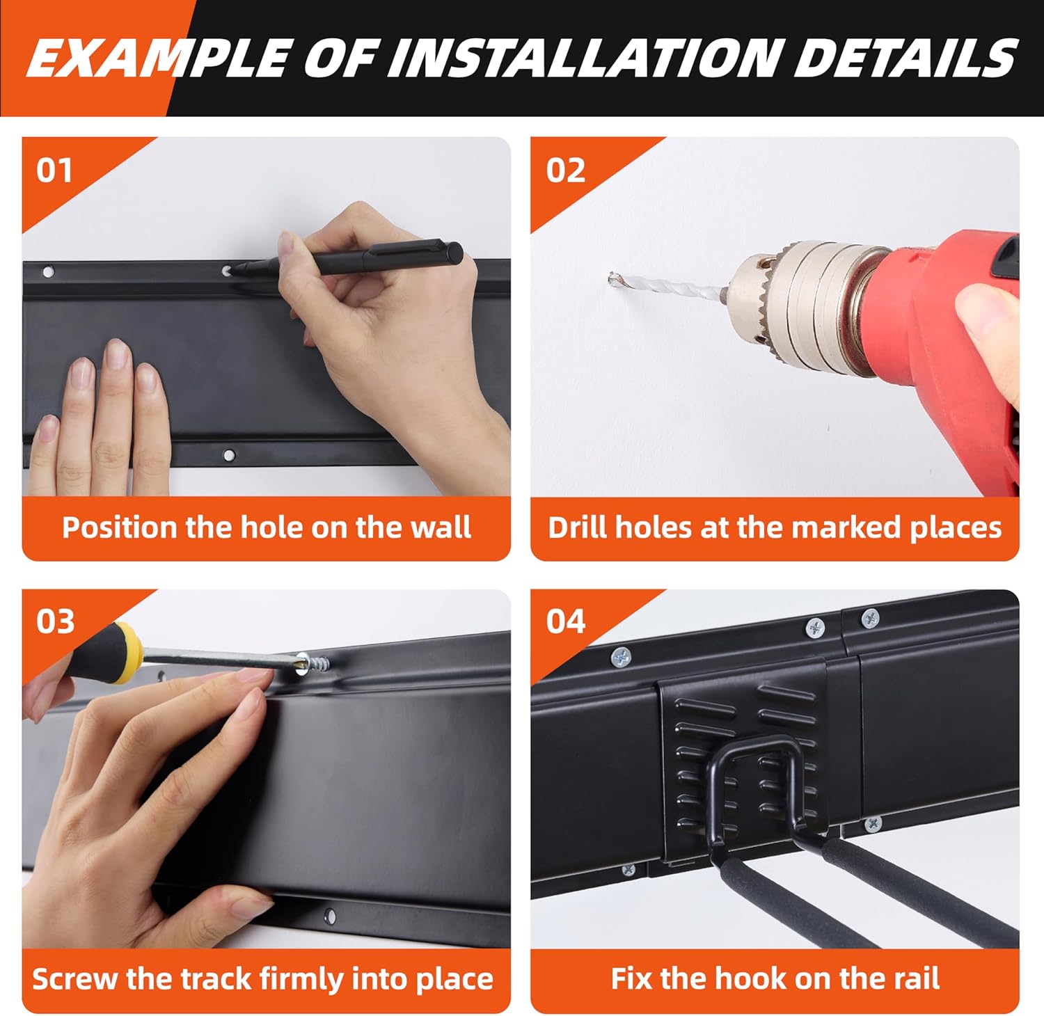 - Multi-purpose Garage Organizer: Garden Tool Organizer can restore a cluttered garage to a neat and orderly state, helping you make more efficient use of vertical storage space and freeing up floor space for storing items. Whether it's chainsaws, lawn mowers, or boxed wrenches, they can all be securely hung on a garage organizers and storage, making your Garage Storage safer and more reliable.