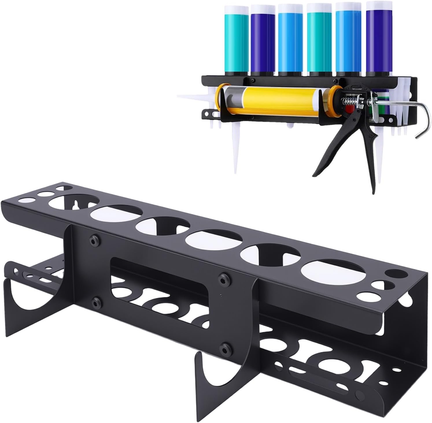 - [Smart Storage Design] Featuring precision engineered slots this organizer holds up to 6 caulk tubes and 6 nozzles securely. the specially designed cutouts accommodate various tool sizes ensuring compatibility with most standard caulking products. keep all your sealing supplies neatly arranged and within easy reach.