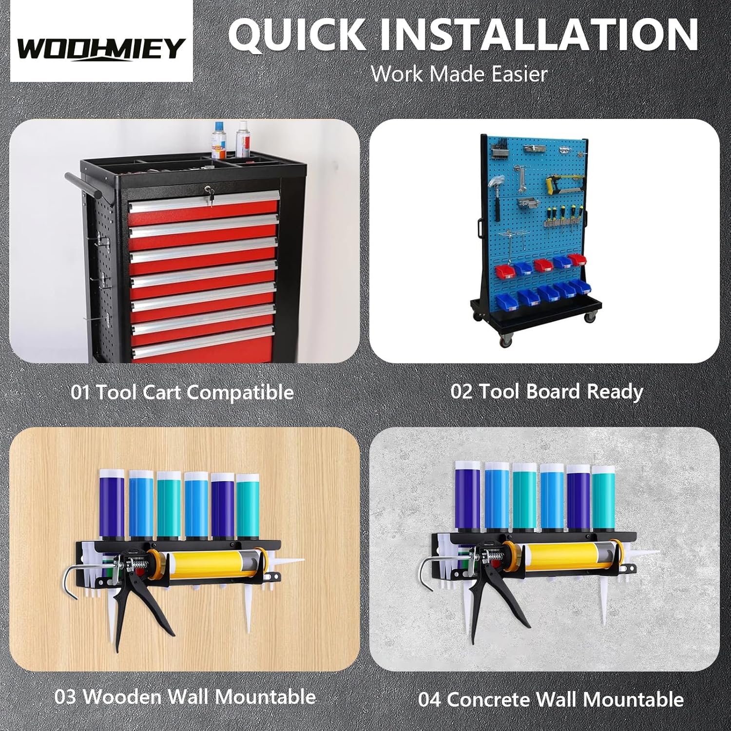 - [Versatile Mounting Options] This flexible storage solution can be installed on various surfaces including concrete walls wood panels and metal pegboards. its universal design makes it perfectly for garages workshops auto repair shops or any space needing organized caulking tool storage. adapt to your unique workspace layout with ease.