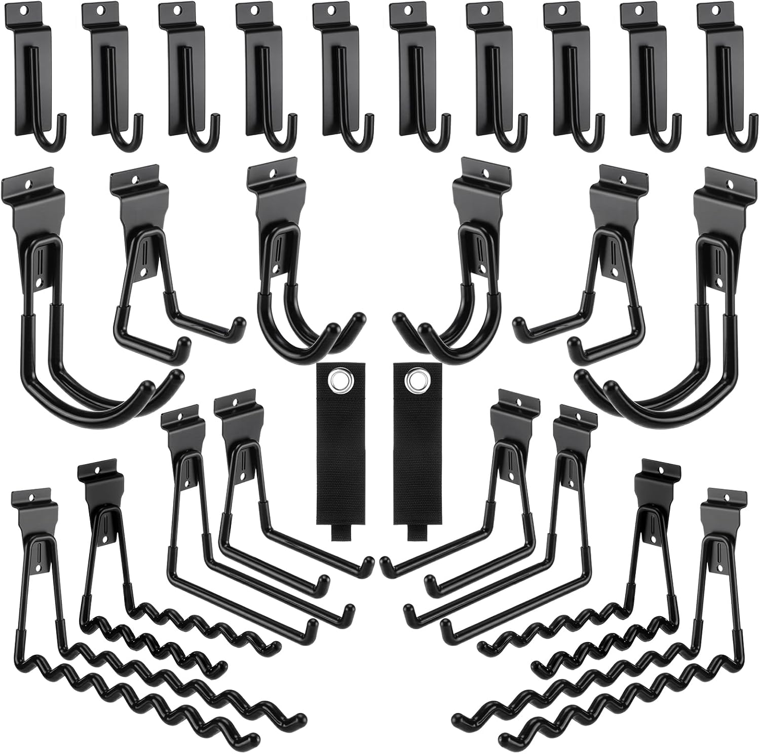 - Versatile Uses: this heavy duty Slat Wall hooks and storage straps offers wide applications; Perfect for garages, retail spaces, and more, they are ideal for hanging garage tools, sports equipment, gardening tools, and various household items