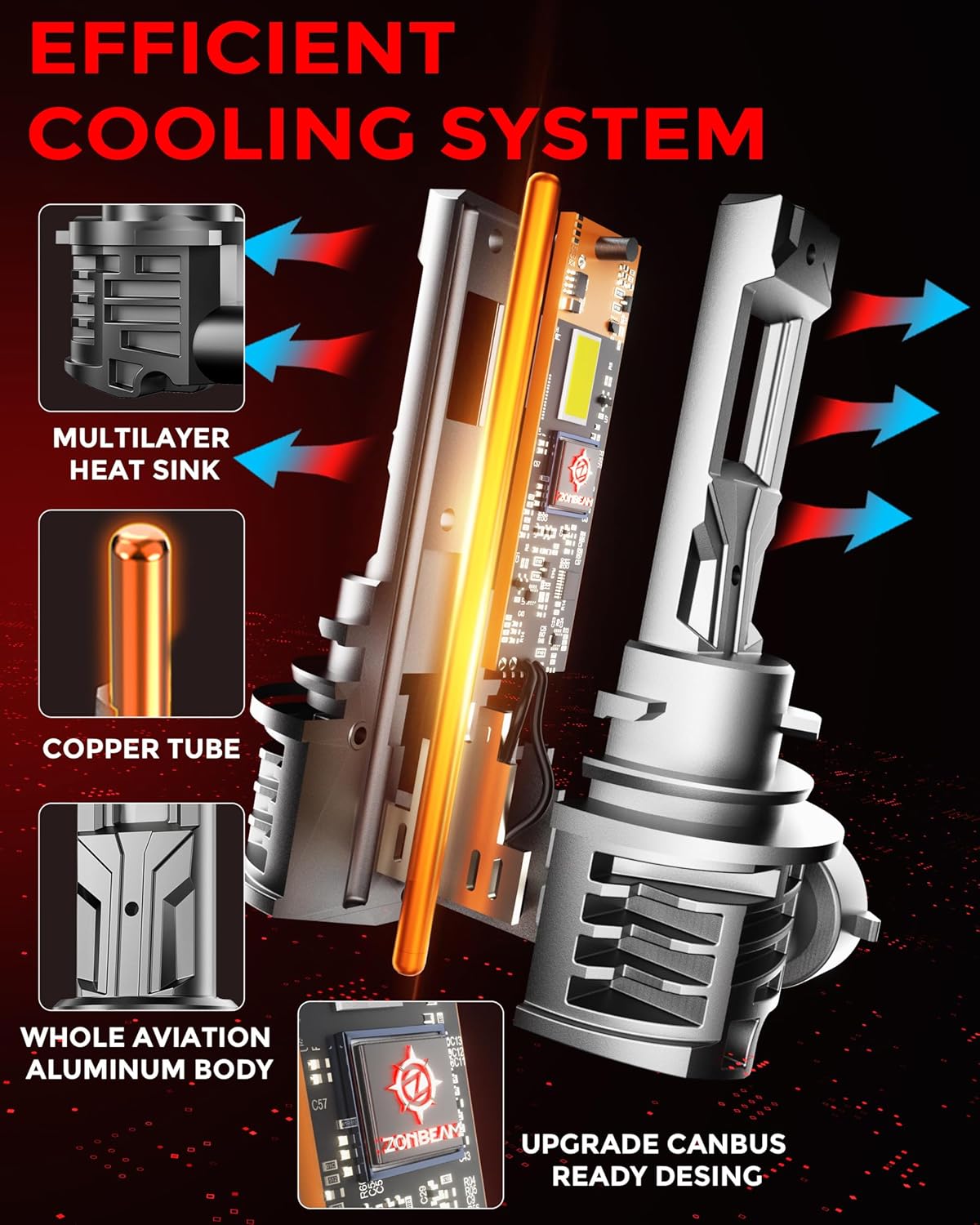 - [Super-Bright 40000LM] 2025 ZONBEAM H11 led bulbs with 40000lm ultra-high lumen output per group compared to halogen and 6000k cool white light, illuminates all the details on the roadway at night, making night driving more comfortable and safer.