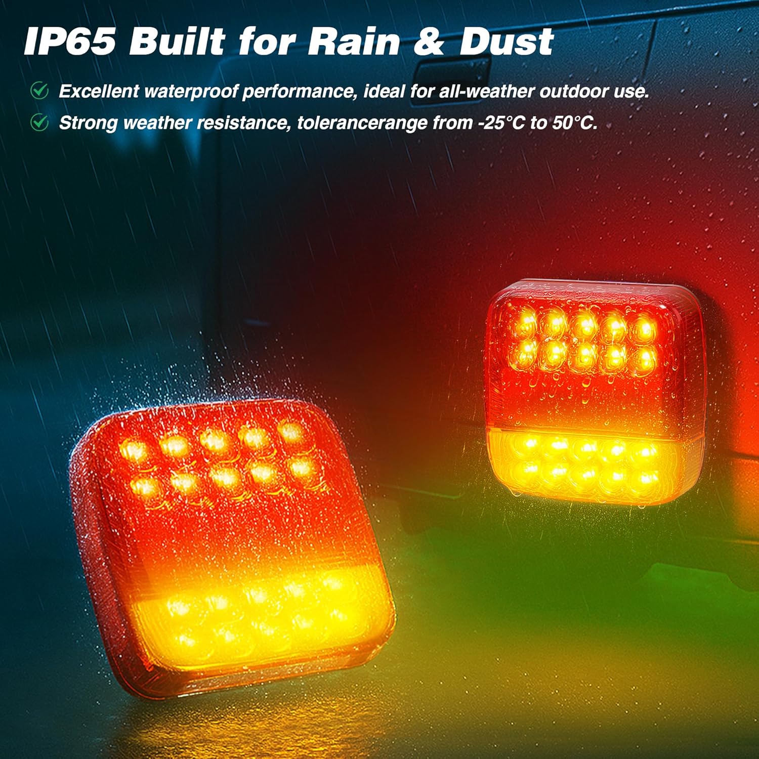 - Wide Compatibility: This Magnetic Wireless Trailer Light is rated IP65 waterproof, making it perfect for use in rainy, muddy, snowy, or dusty outdoor environments.Widely compatible with trailers, trucks, pickups, construction vehicles, forklifts, snowplows, agricultural machinery, RVs, boat trailers, and emergency safety scenarios—truly an all-in-one lighting solution for multiple applications