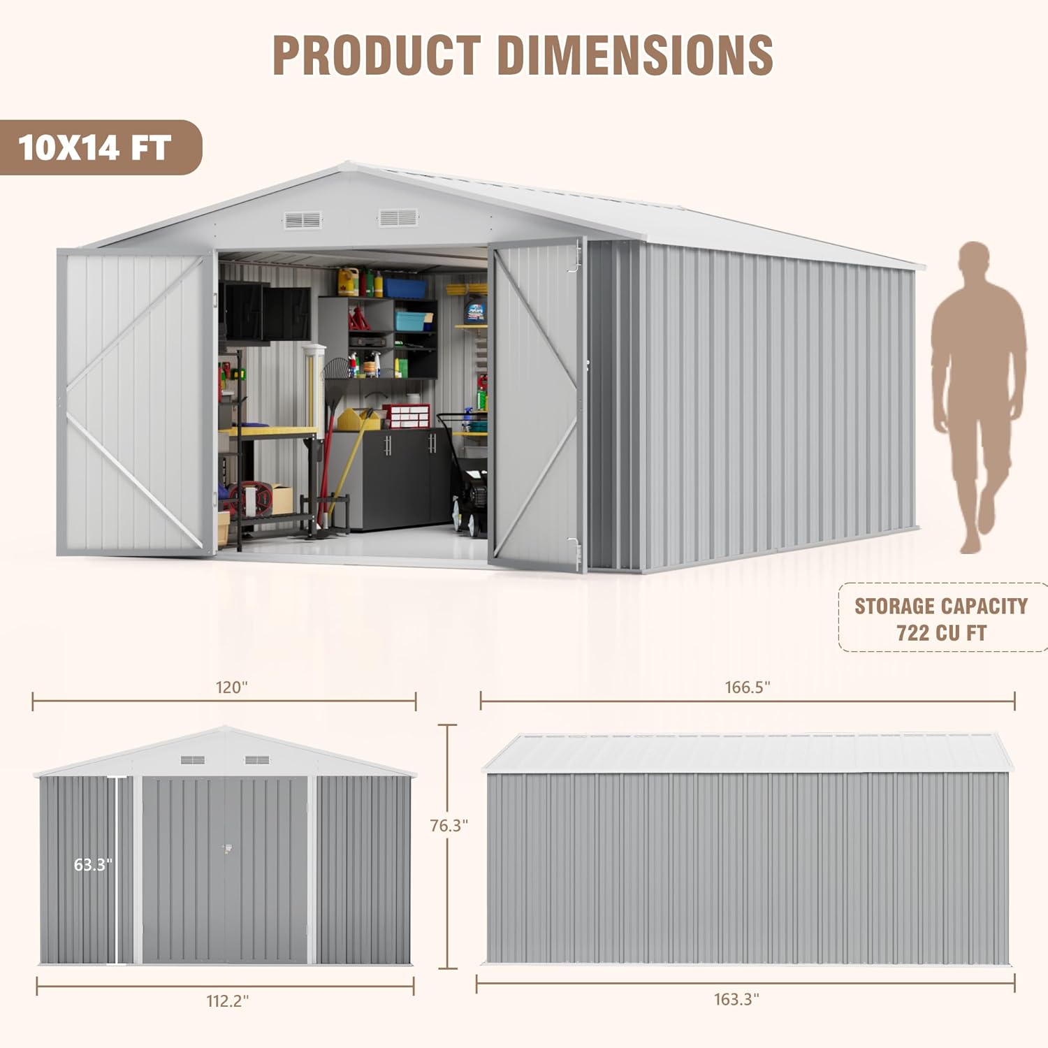 - Product Dimensions : 166.5"D x 120"W x 76.3"H