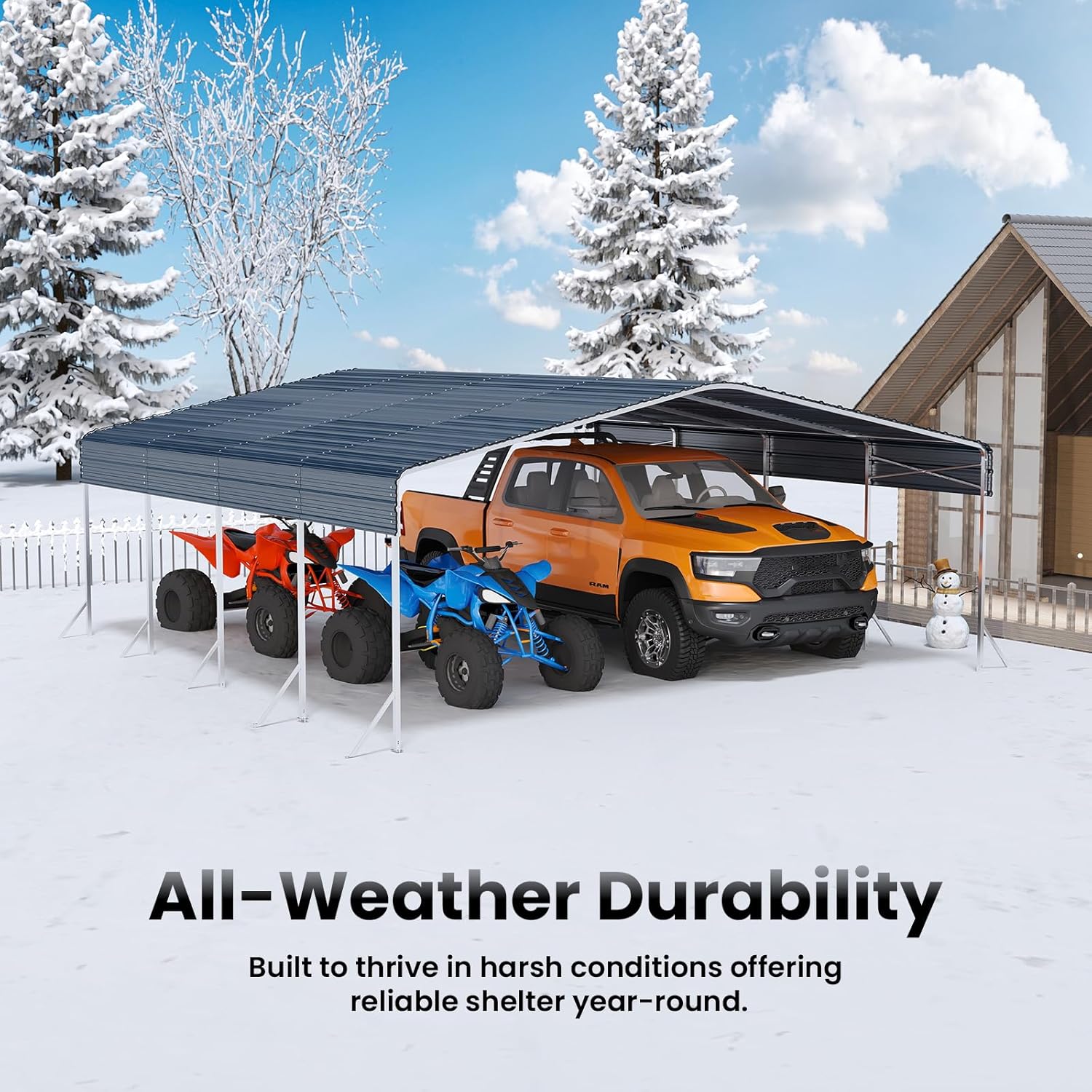 - Year-Round Protection: A reinforced 2" x 2" frame and 27-gauge metal roof provide reliable shelter, protecting your vehicles and equipment from rain, snow, strong winds and sunlight